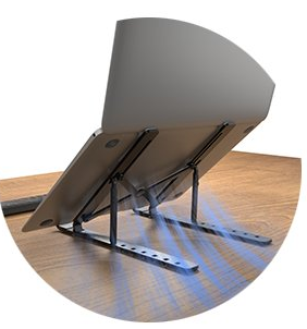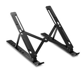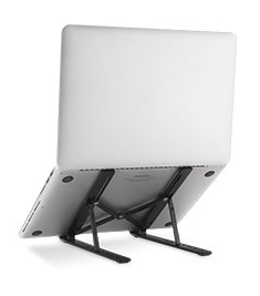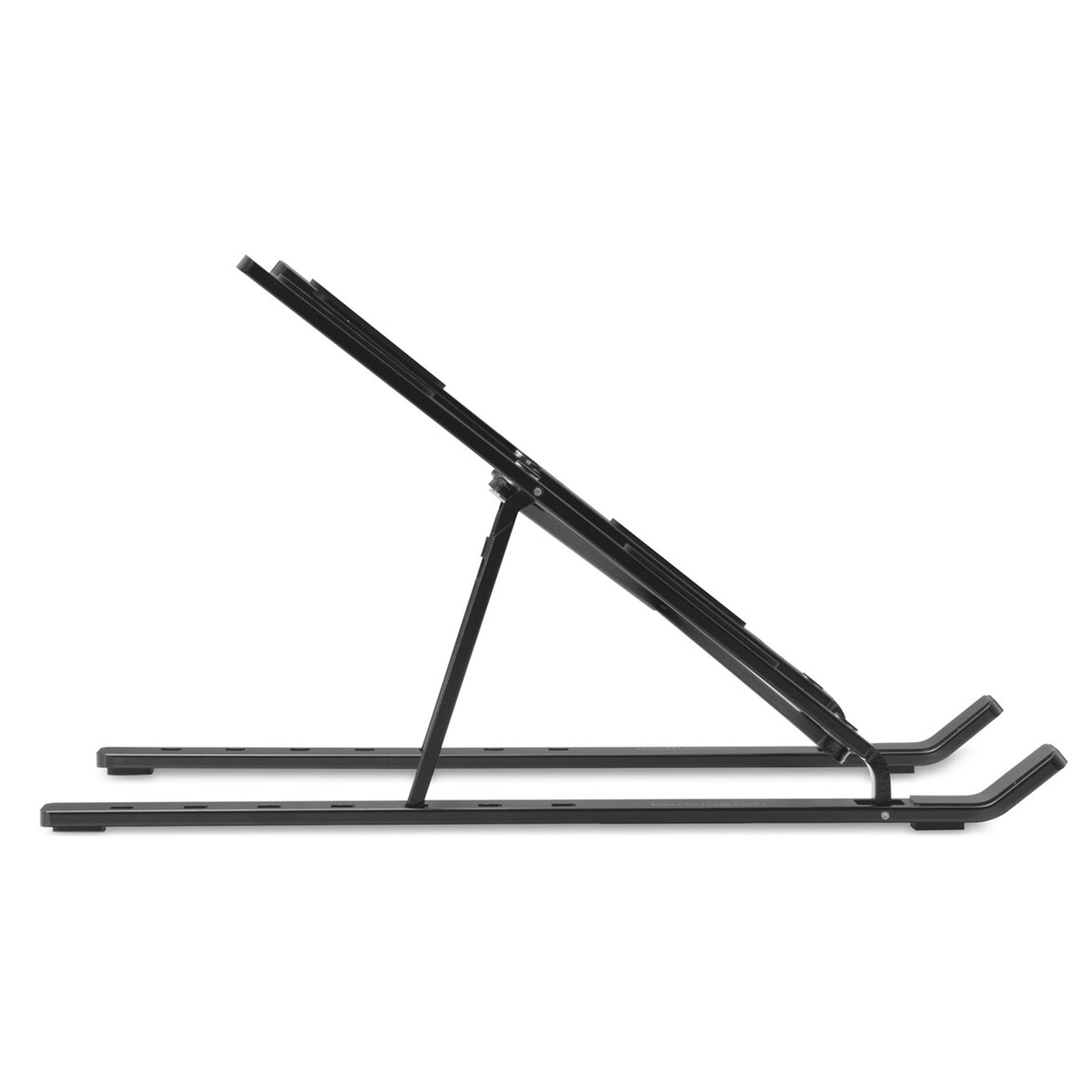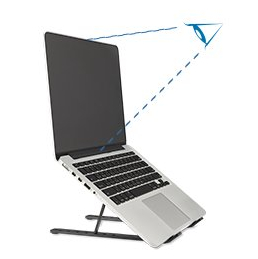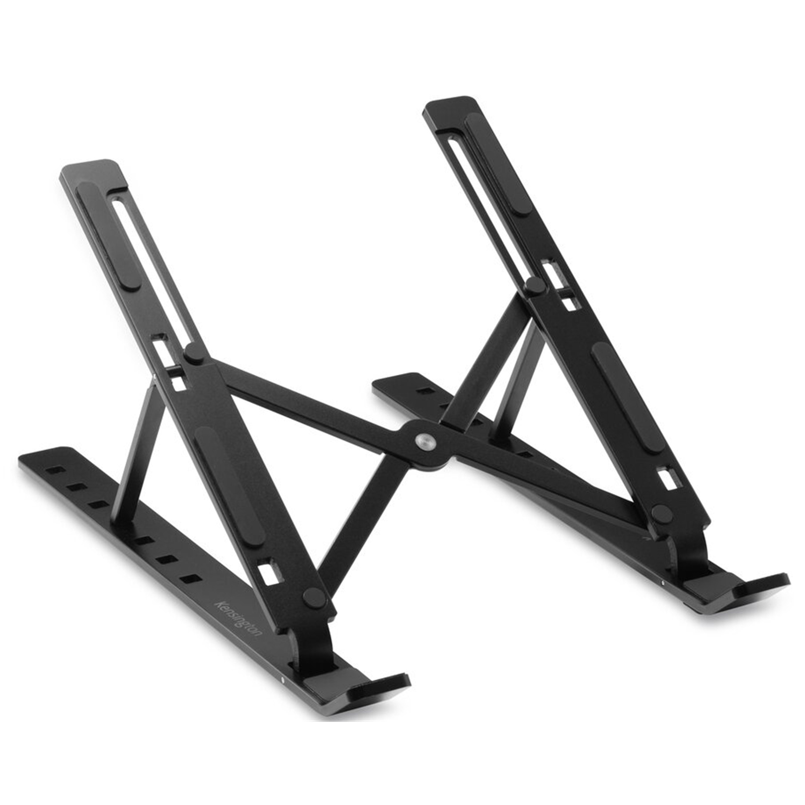 As laptops have moved from conference room and coffee shop to the home office, users need a way to easily integrate their laptop into their desktop environment. Kensington Collapsible Aluminum Laptop Riser is the lightweight, portable laptop stand for those seeking to match ergonomic comfort with enhanced productivity. Constructed of durable, sustainable aluminum, the smart, minimalist design supports virtually any size laptop up to 16", letting you choose from 7 levels of height/angle adjustment to elevate the screen to eye level for optimal viewing. Features open ventilation for laptop cooling and quickly folds flat for grab-and-go travel.