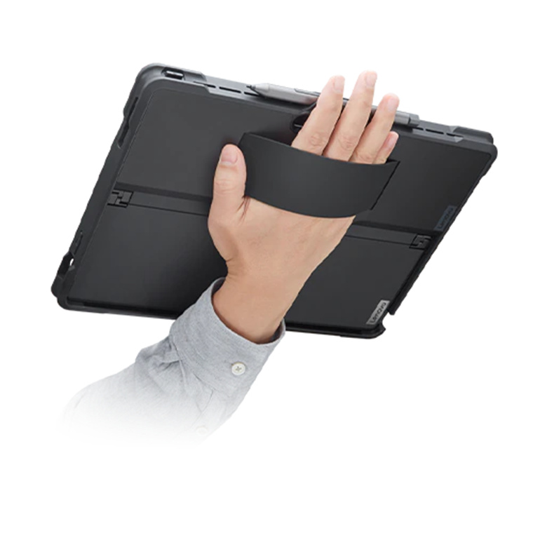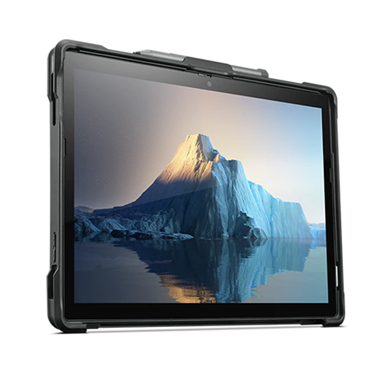 Custom designed case for the ThinkPad X12 Detachable. Designed with a slim, clean profile and the perfect balance of functionality and protection. This case allows full access to tablet features including the kickstand, ports and touch screen, plus keyboard compatibility. Perfect for most users, its features include a soft-touch and easy-to-clean silicon hand strap, convenient built-in pen clip, tablet keyboard attach capability, bump and scratch protection, low profile and shock absorbing corner protection, and an essential degree of drop protection (up to 80cm).