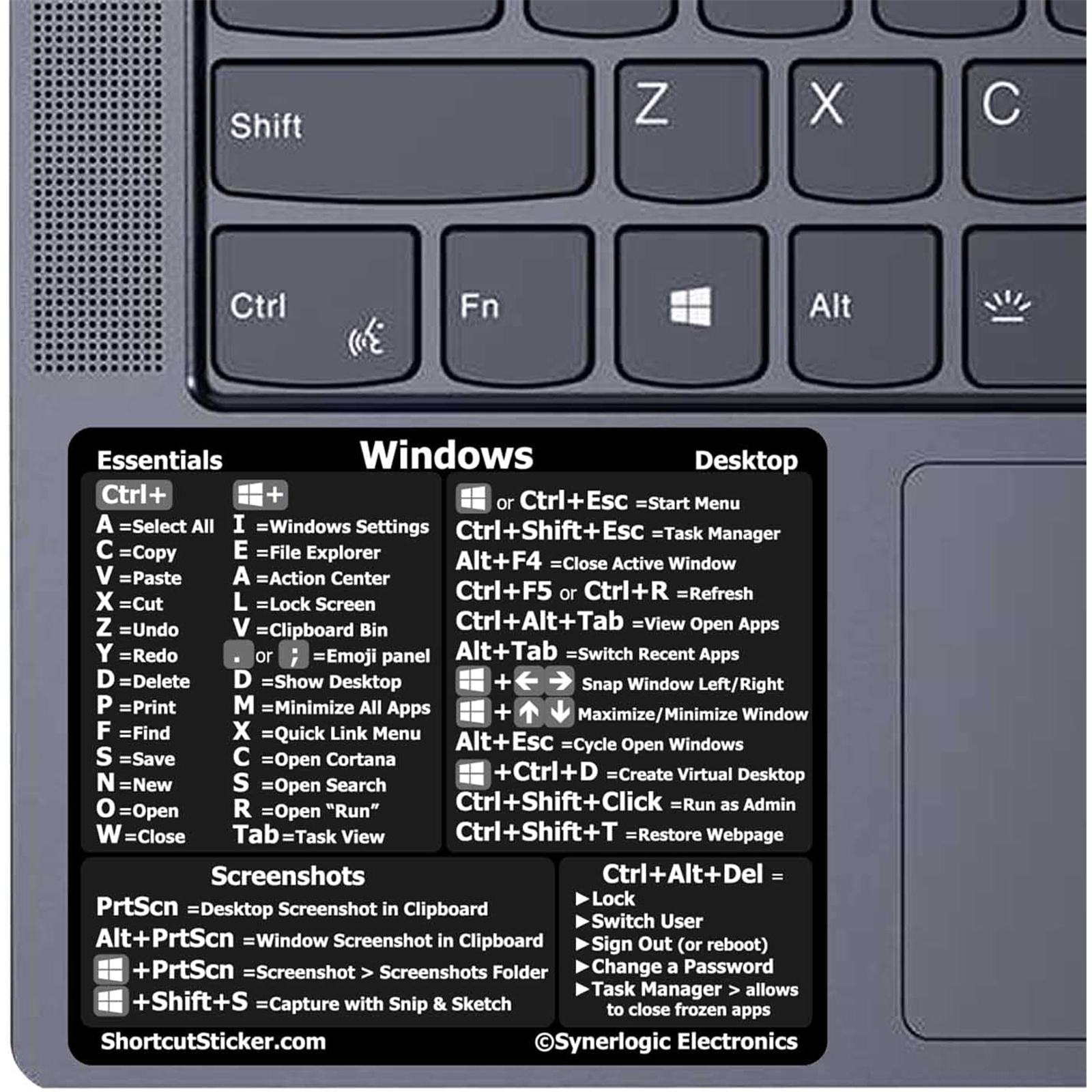 Windows PC/Laptop Reference Keyboard Shortcut Sticker - Black, No-Residue Adhesive, for Any PC Laptop or Desktop (1 PCS)
