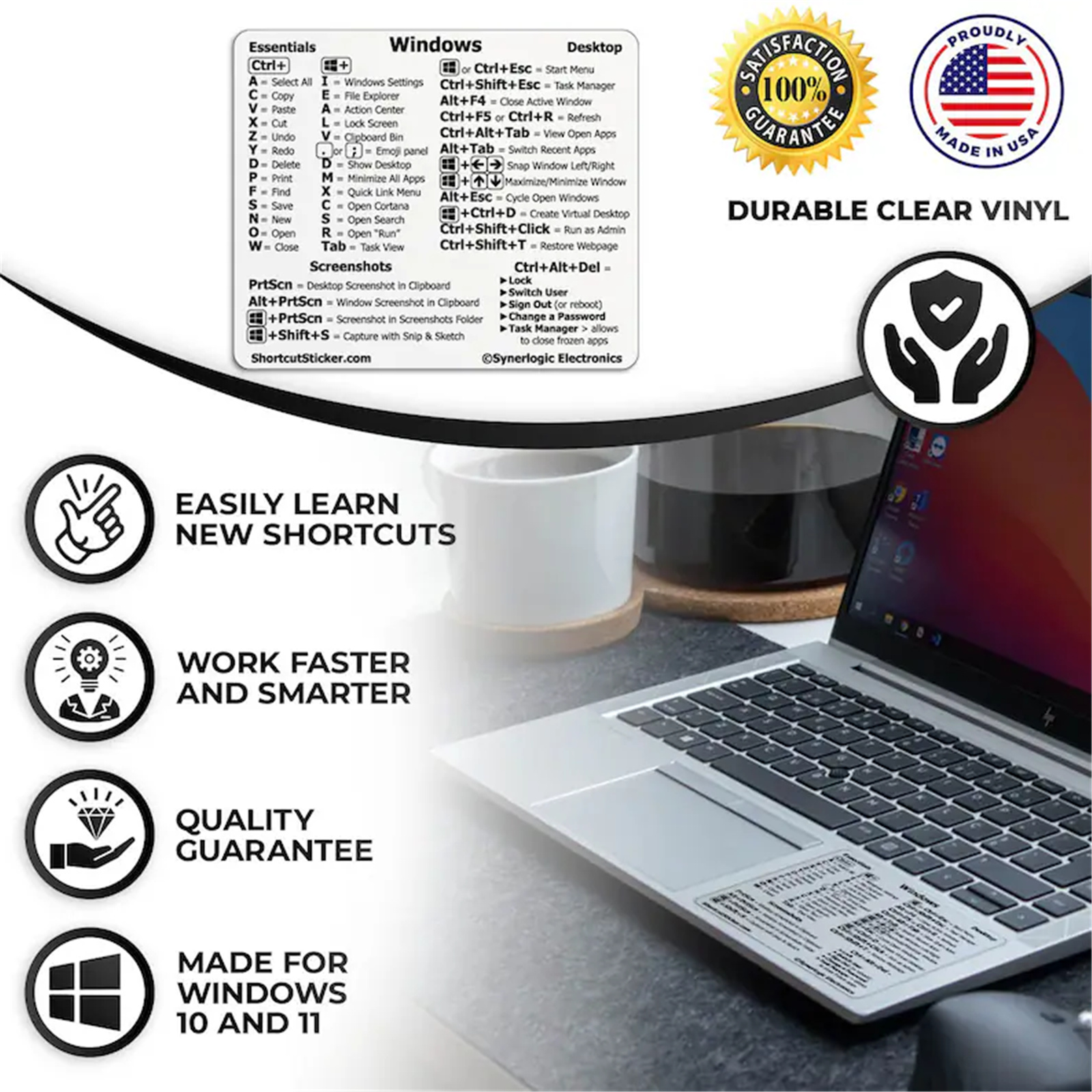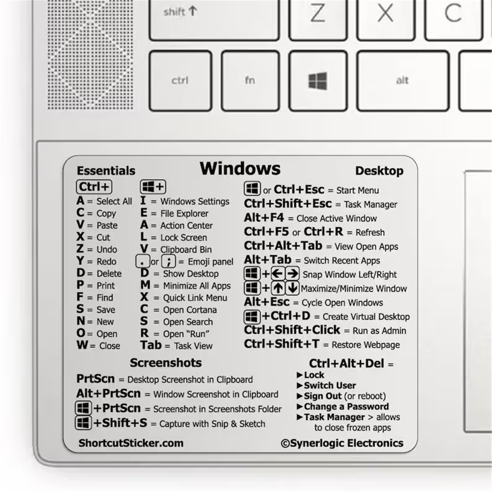 Windows PC/Laptop Reference Keyboard Shortcut Sticker - Clear, No-Residue Adhesive, for Any PC Laptop or Desktop (1 PCS)