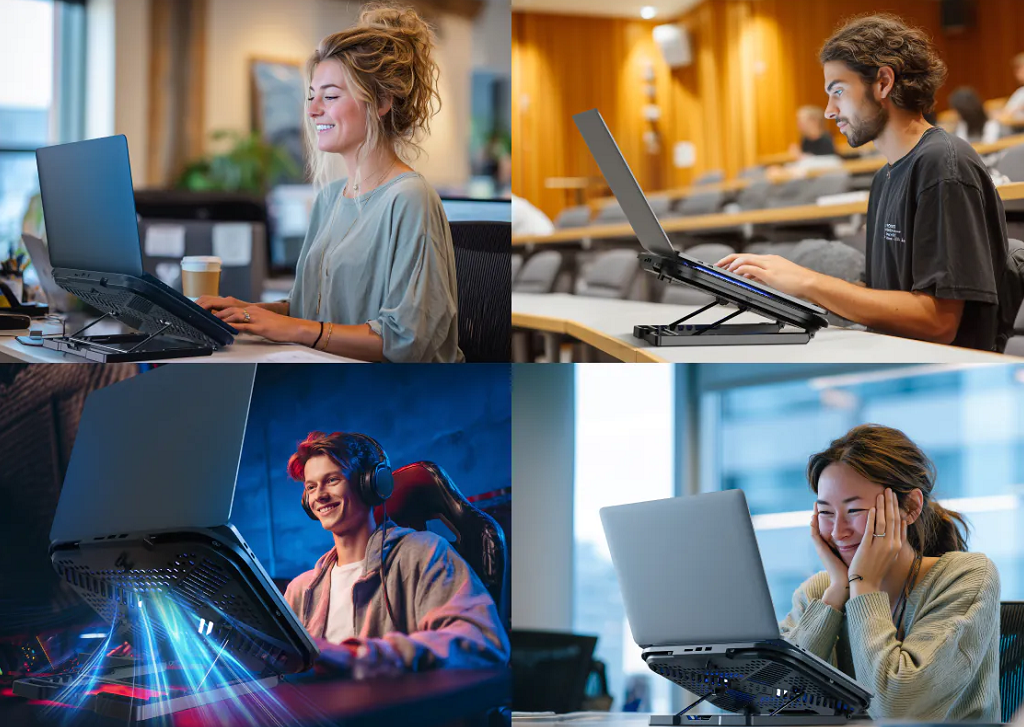 8 cooling fans layout deliver powerful airflow to rapidly reduce laptop temperature, prevent overheating-induced throttling, and ensure stable performance.