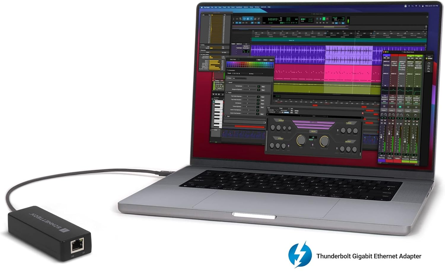 Featuring a 40Gbps Thunderbolt™ interface, the Sonnet Thunderbolt AVB GE Adapter for Macs supports the low-latency, fully synchronised streaming of audio and video over Ethernet required for Avid Pro Tools | Carbon and AVB support. Operating off its Thunderbolt connection, Sonnet's Thunderbolt AVB Adapter is bus-powered, so there's no need to plug in a power supply or power cable.