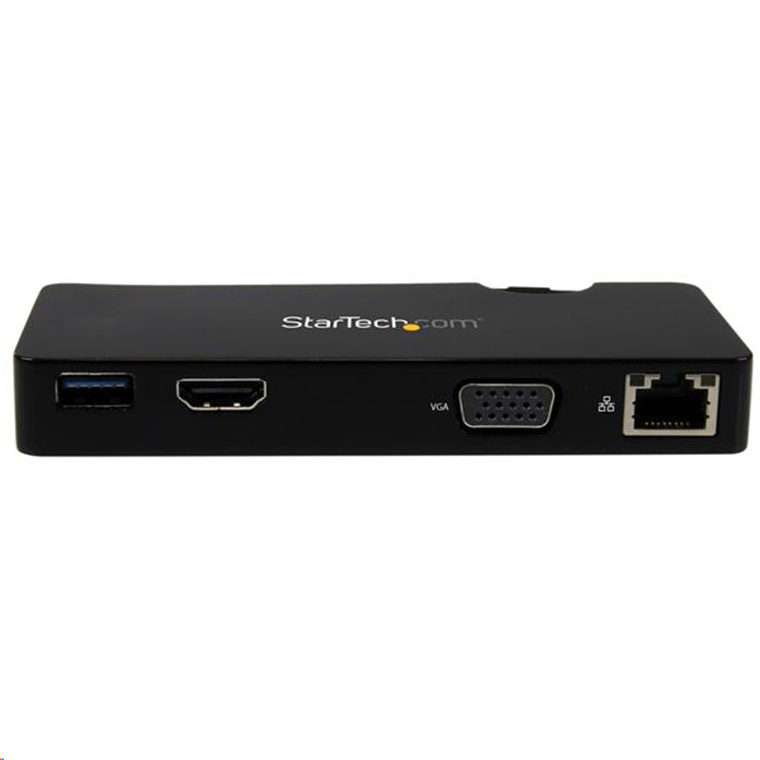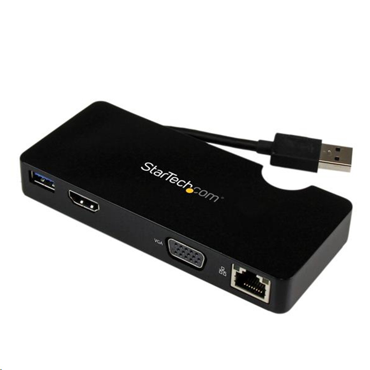 The travel docking station for laptops lets you transform your laptop or Ultrabook™ into a mobile workstation. It adds HDMI® or VGA video output, a USB 3.0 hub port, and a Gigabit Ethernet RJ45 port, through a single USB 3.0 host connection. The travel-friendly dock helps you overcome the port limitations of modern mobile computers, making it ideal for your laptop, Microsoft Surface™ Pro 4, Surface Pro 3, Surface 3, Surface Pro 2 or Surface Book.