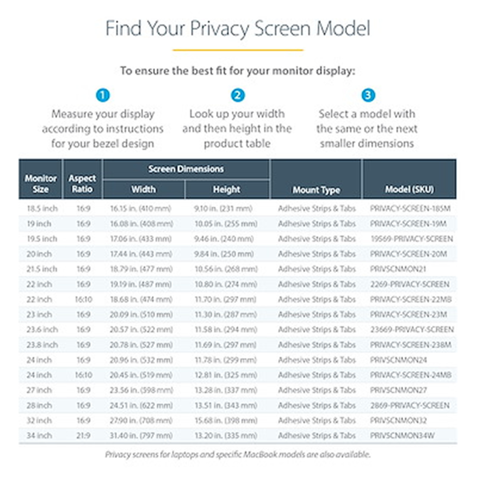 - EASY APPLICATION: Attach privacy filter directly to the monitor using residue-free adhesive strips, or slide the filter over your display with included side mounting tabs - Extra adhesive strips and mounting tabs (MON-PRIVACY-SCREEN-K) sold separately