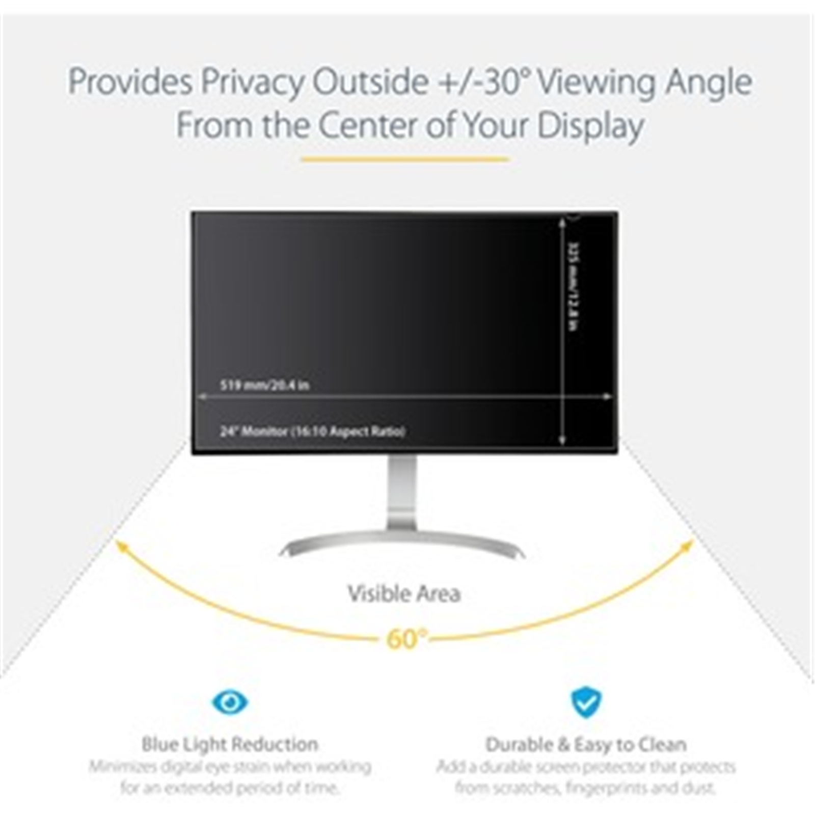 StarTech.com PRIVACY-SCREEN-24MB Monitor Privacy Screen for 24" Display Computer Screen Security Filter - Blue Light Reducing Screen Protector Film - 16:10 Widescreen - Matte/Glossy - +/-30 Degree