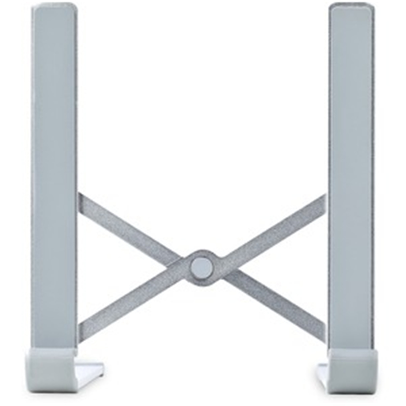 The elegant laptop riser features aluminum construction to ensure durability and sturdiness and a silver anodized finish complements the design. The support area facilitate passive cooling by reducing airflow restriction around the base of the mounted device. Non-skid rubber feet protect the work surface from scratches and scuffs, including glass top desks.