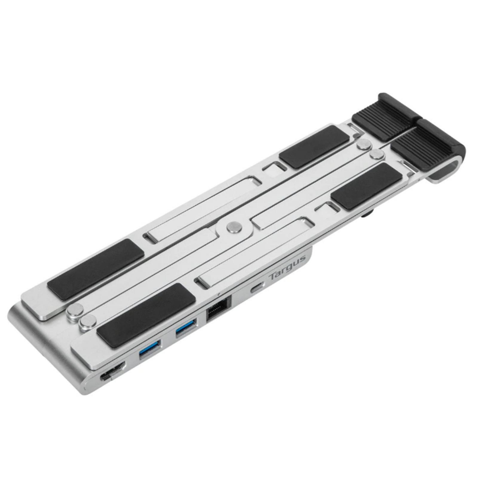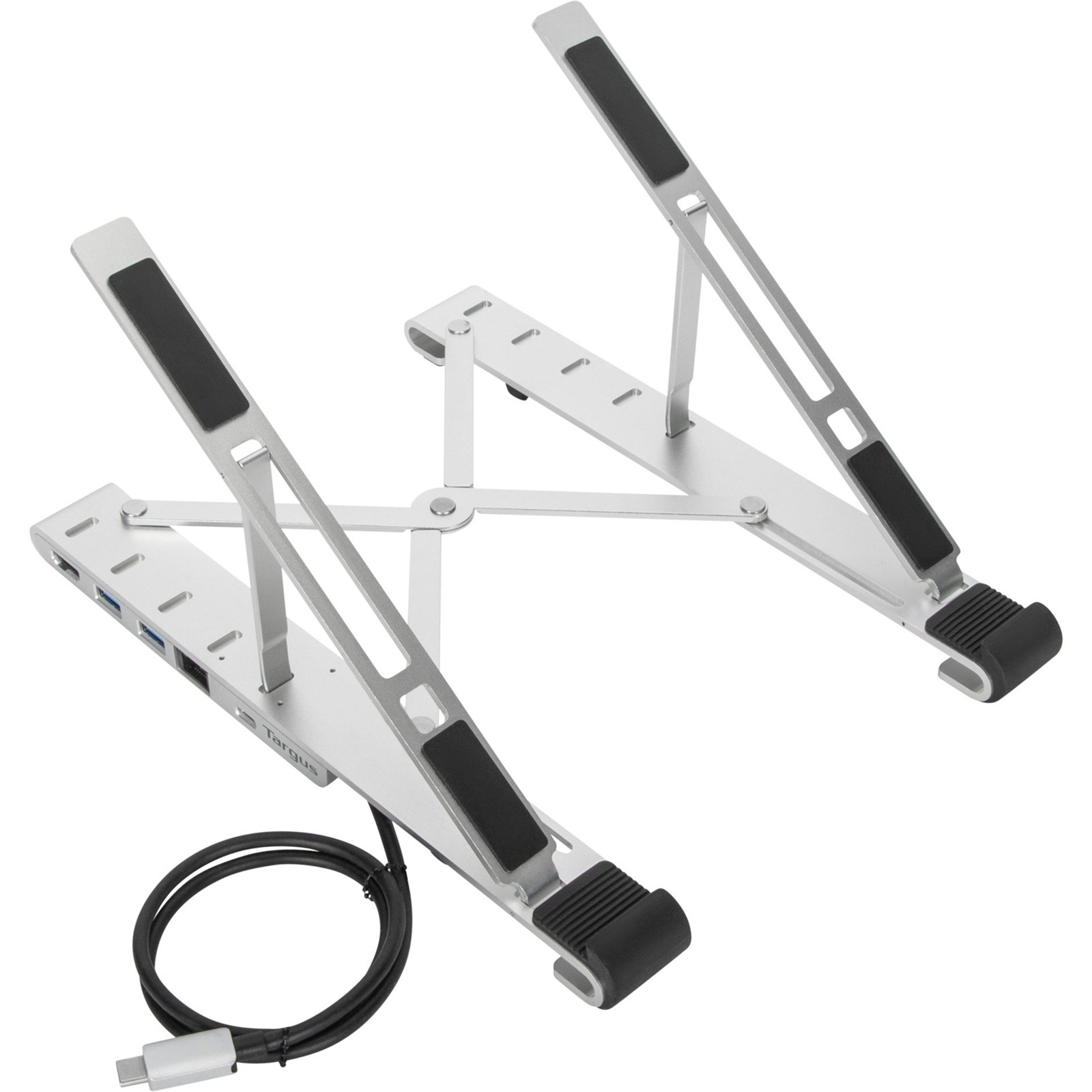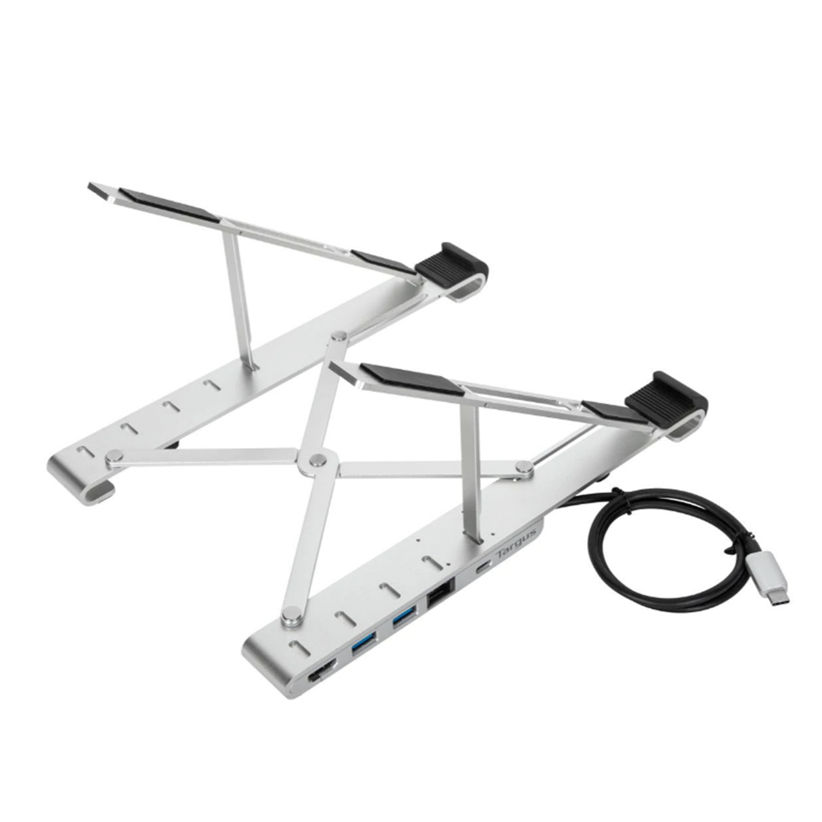 Targus Portable Laptop Stand + Integrated USB-C Single 4K Docking Station, Support 100w Power Delivery, HDMI x1, USB3.0 x2, USB-C x1, RJ45 x1, Support ChromeOS, iPadOS, macOS, Windows, 2yr warranty