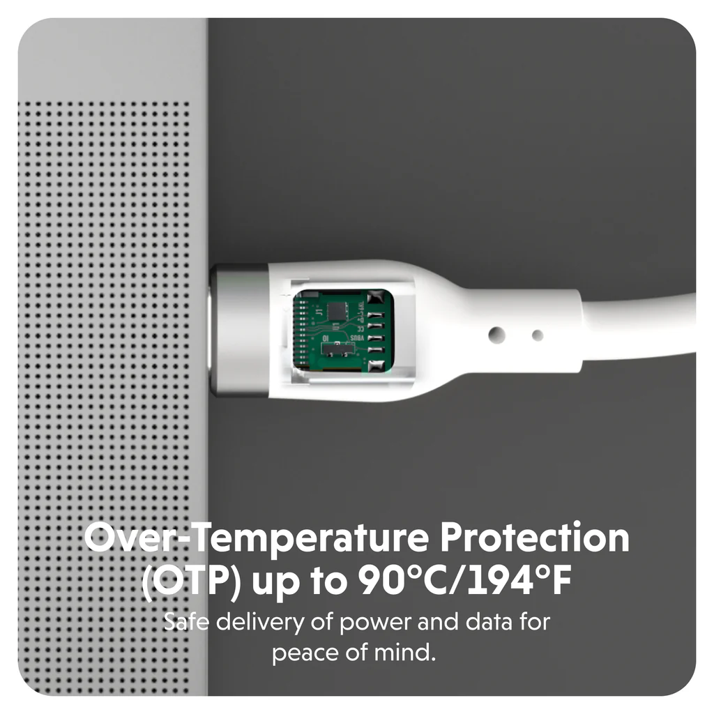Made with a durable silicone jacket, the cable has been tested to withstand over 25,000 bends and has been built to seamlessly handle high-speed charging demands while on the move.