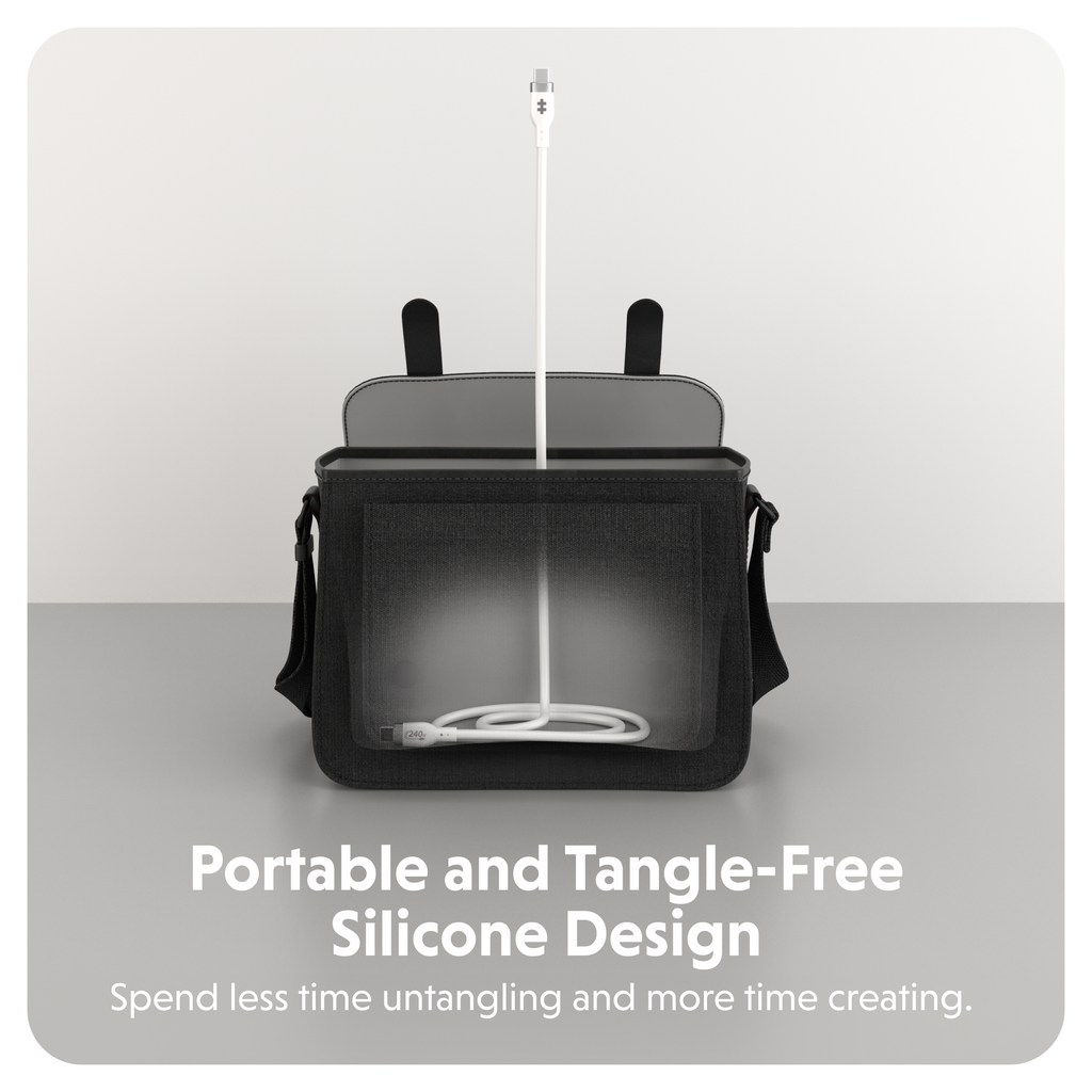 A super soft silicone design enables the cable to remain tangle-free, even when stuffed into a bag, pocket, or wrapped around a charger.