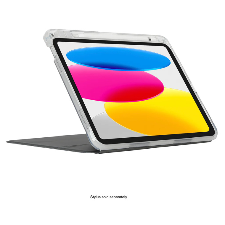 Complement your colorful new iPad with the Targus® Pro-Tek® Clear Case for iPad® (A16) and iPad® (10th gen.) 10.9-inch - a case engineered for protection. Featuring a shock-absorbent tray with wrap-around bezel, covered buttons, and reinforced corners, plus a protective folio cover, the case delivers military-grade drop protection (up to 4 feet/1.2 meters)* in its sleek, clear-back design.