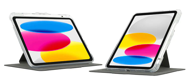 Complement your colorful new iPad with the Targus® VersaVu® Clear Case for iPad® (A16) and (10th gen.) 10.9-inch - a case designed for protection and versatile viewing. Featuring a shock-absorbent tray with wrap-around bezel and reinforced corners, plus a protective folio cover to safeguard the screen, the case delivers military-grade drop protection (up to 4 feet/1.2 meters)* in its sleek design.