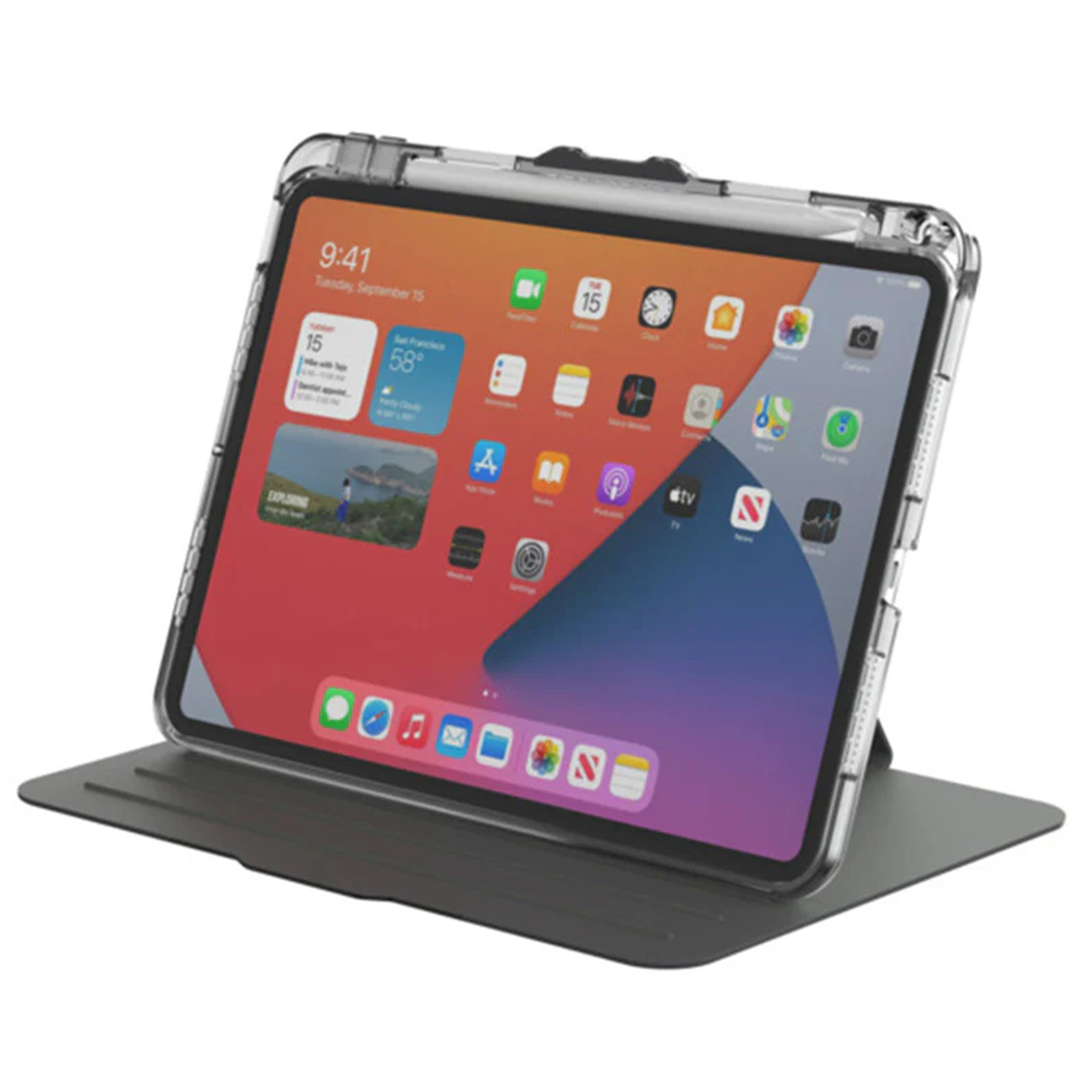 No need to hide that colorful iPad Pro® behind the case to fully protect it. Its back cover is made with a clear, shock-absorbent TPU, so you can show off the color of your tablet while keeping it wrapped in protection. Not only protective, but functional, its precision cutouts allow access to all ports and buttons and ensures the camera is accessible for photos or videos without removing it from the case.