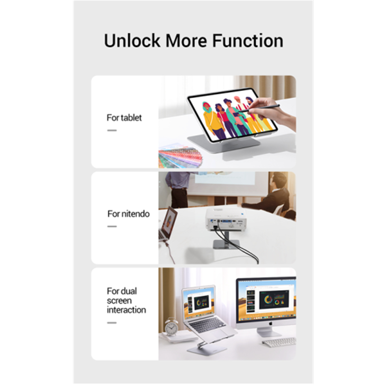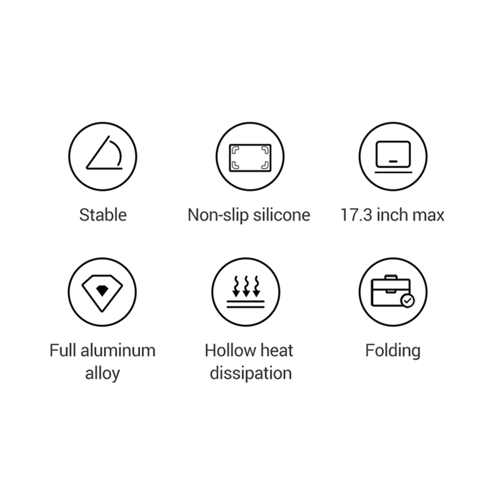 The folding laptop stand is made of premium aluminum alloy, with smooth edges, which protects your device from scratches. Provide a highly sturdy and durable silicone pad to ensure a close connection with the desktop to fix your laptop in place without worrying about shaking and slipping