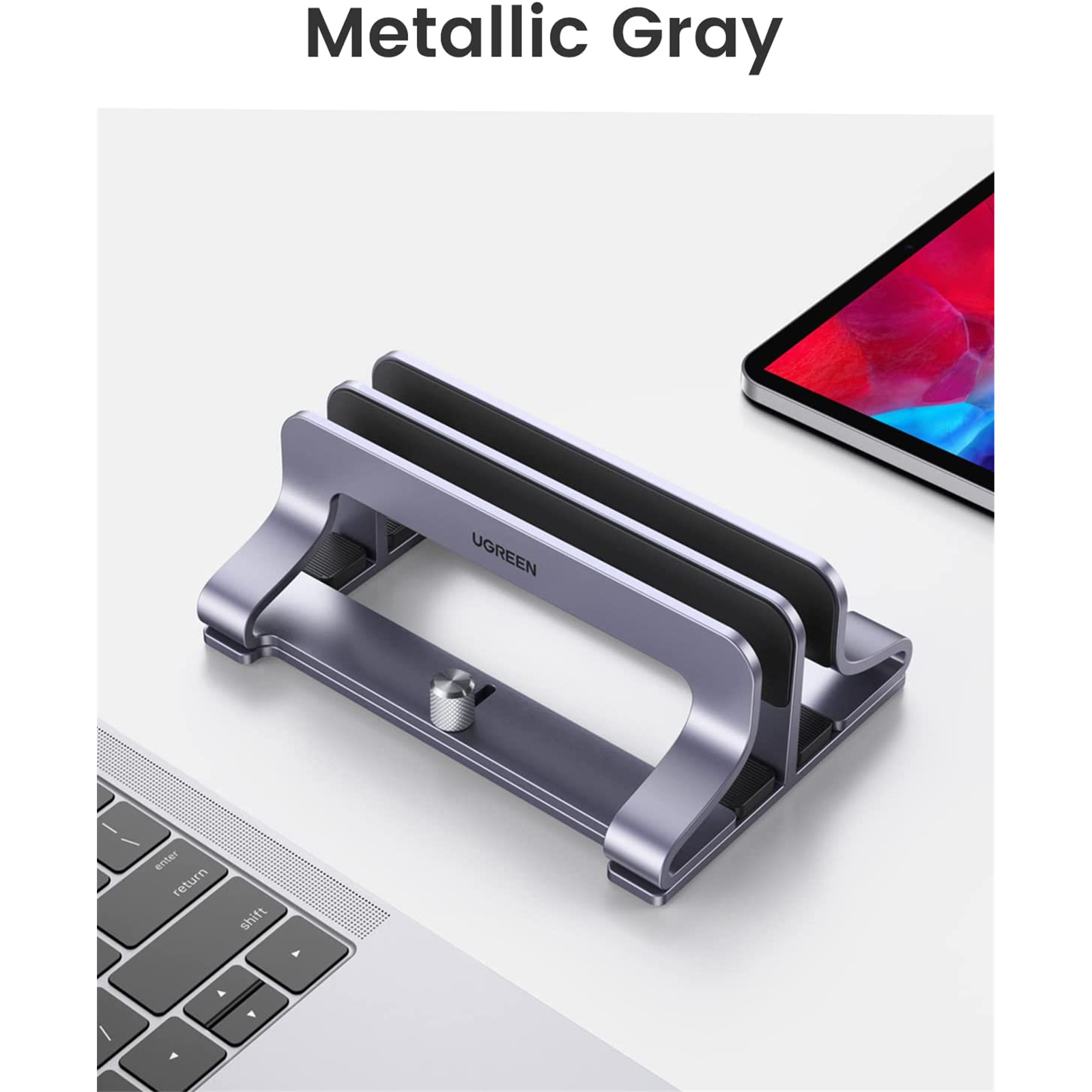 UGREEN LP258-60643 Vertical Dual Slots Laptop/Tablet Stand - Space Grey, Space Saving Upright Storage, Compatible with 12-26mm thickness Apple MacBook & iPad and Tablets
