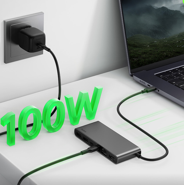 - Keep your devices powered safely and efficiently with up to 100W of Power Delivery when charging to host device†