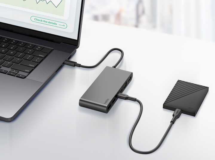 - Gain eight additional ports through one USB-C connection