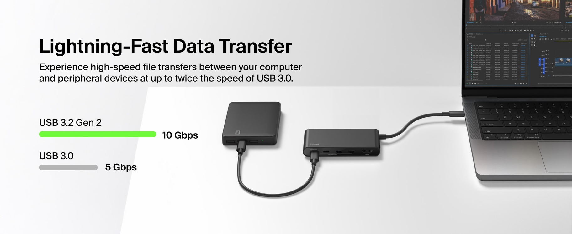 - Spend more time working and less time transferring with fast data transfer speeds up to 10Gbps