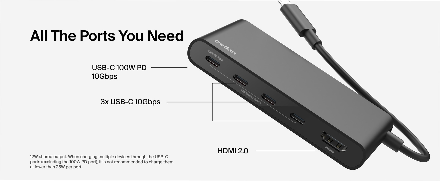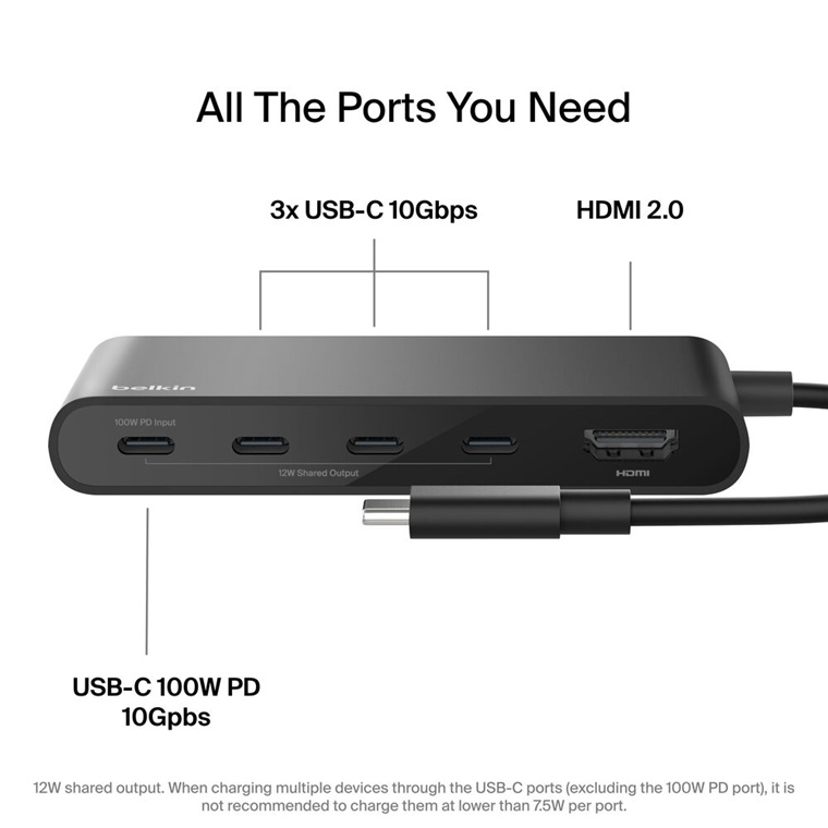 - 12W output shared among all USB-C ports[2]
