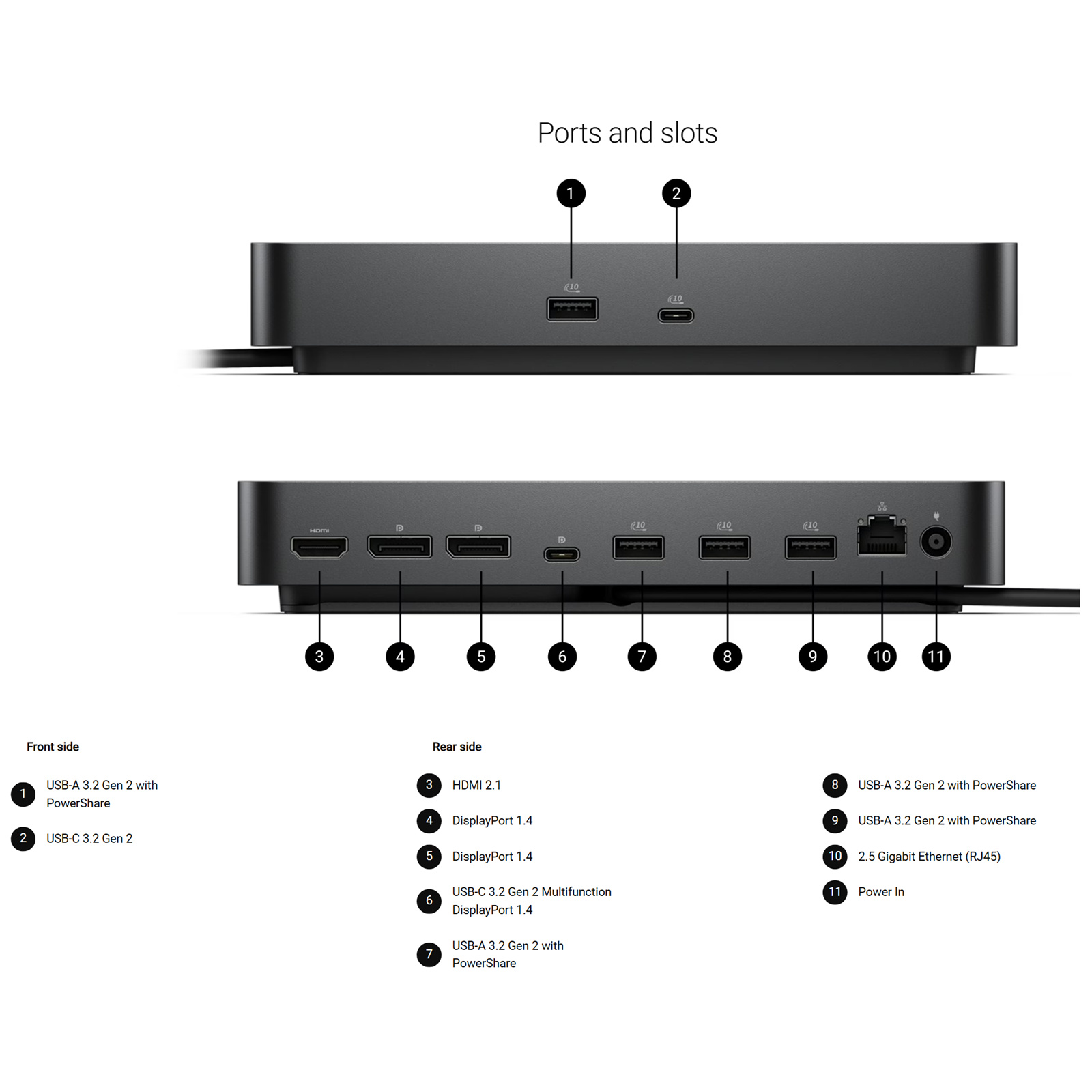 Dell Pro Dock WD25 USB-C Quad WQHD Docking Station with 100W Power Delivery (Up to 90W to non-Dell system) - 2x DP1.4 - 1x HDMI2.1 - 1x USB-C MFDP - 1x USB-C 3.2 - 1x 2.5GbE RJ45 - No Headphone Port - Support Chrome / Linux / Ubuntu / Windo