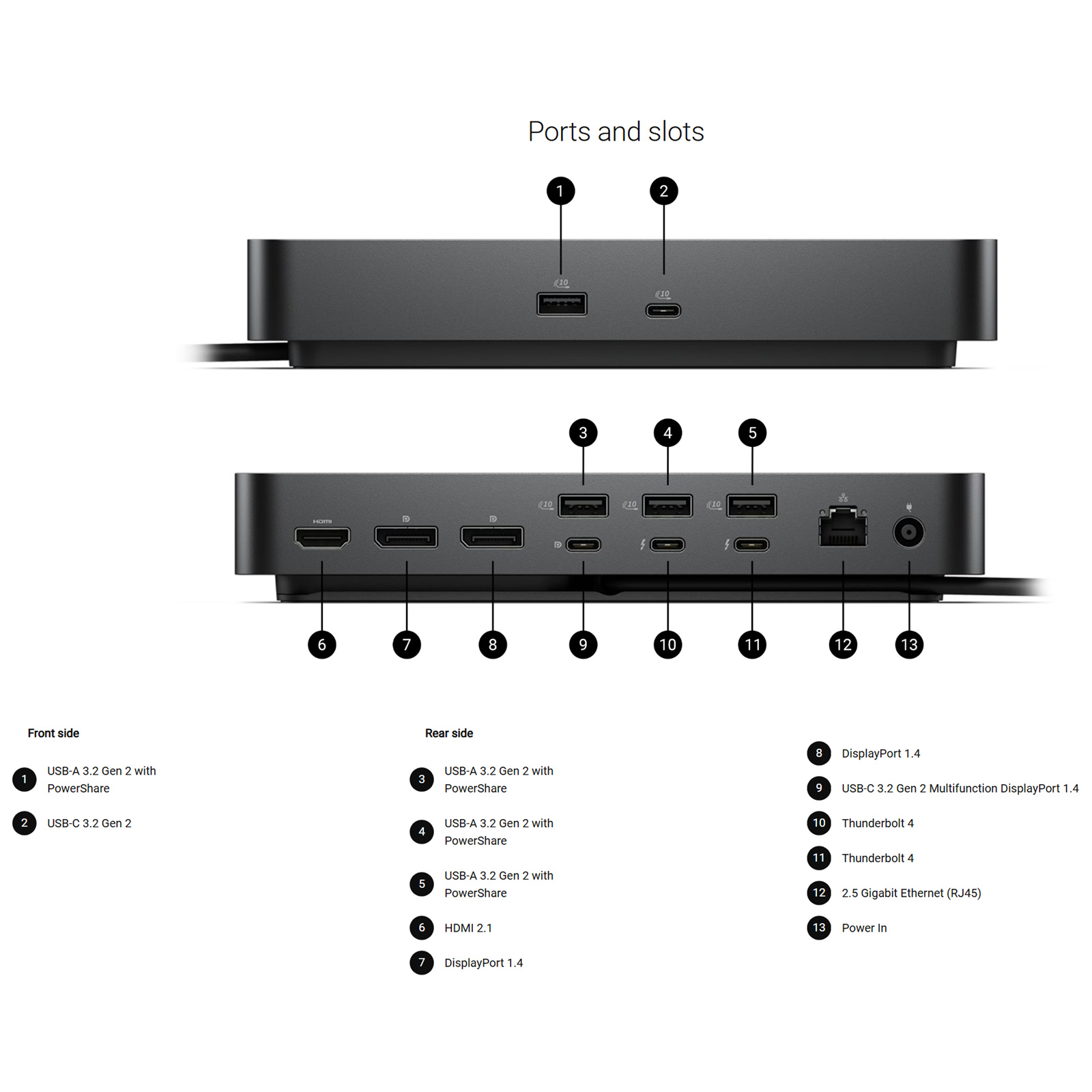(Up to 96W to non-Dell system) - 2x DP1.4 - 1x HDMI2.1 - 1x USB-C MFDP - 1x USB-C 3.2 - 1x 2.5GbE RJ45 - No Headphone Port - Support Chrome / Linux / Ubuntu / Windows - /PB 6 mths warranty