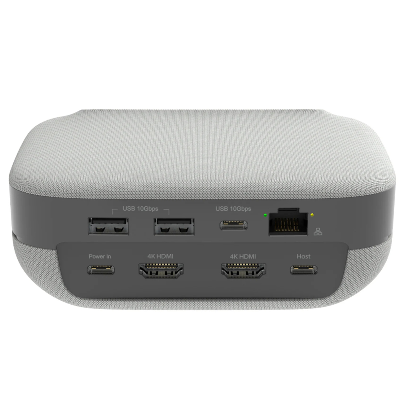 The USB-C® Dual 4K Speakerphone Dock Pro that turns your laptop into a full workstation and conferencing device. Includes two 4K HDMI™ outputs and one Type-C Power In port that supports up to 100W Power Delivery for charging laptops with a Type-C power adapter. Has two USB™ Type-A 10Gbps ports, and one USB-C® 10Gbps port for connecting a variety of USB™ devices. The docking station is also equipped with an RJ45 Gigabit Ethernet port for high-speed network connectivity.