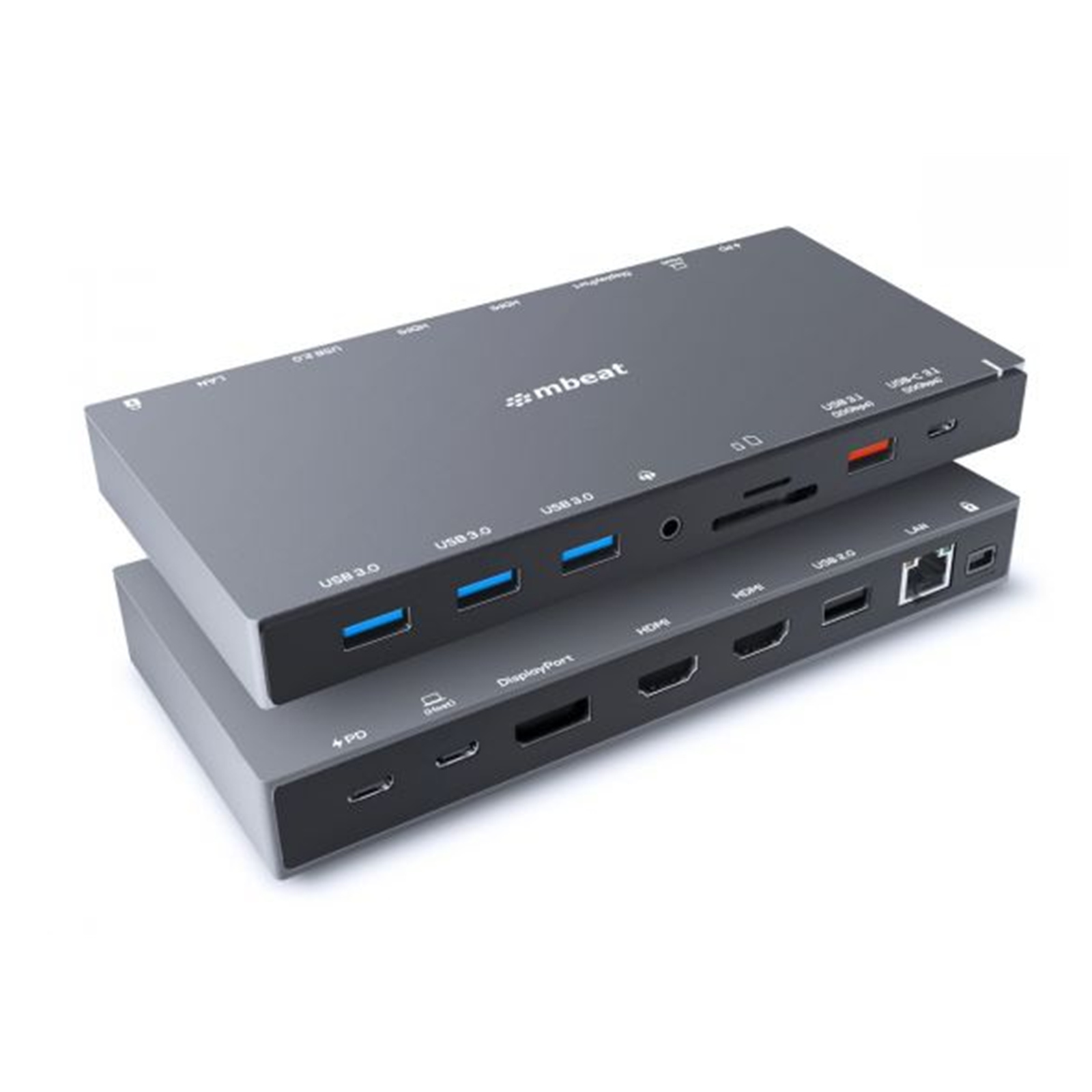 mbeat 15-in-1 Triple Display USB-C Dock - Space Grey 2x HDMI - 1x DisplayPort - 10G Data