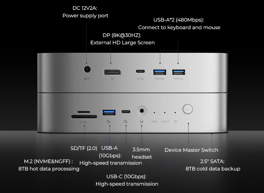Storage Expansion: With up to 16TB of expansion, it supports fast alternating data transfer between hot and cold storage, enhancing workflow efficiency.