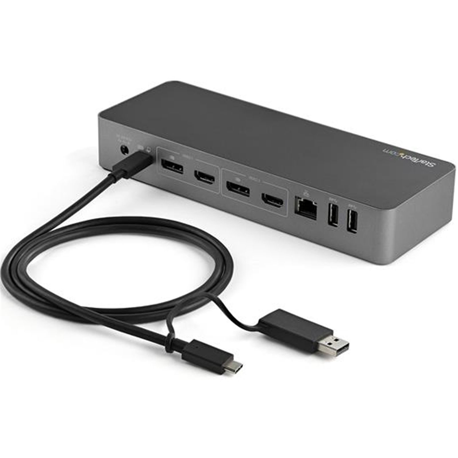 StarTech.com USB-C & USB 3.0 Dual 4K Docking Station with 100W Power Delivery 2x DisplayPort - 2x HDMI - 2x USB-C - 3x USB 3.1 - RJ45 - 1x 3.5mm Audio - Supports Apple Intel & M1 (Dual 4K) / ChromeOS / Microsoft Windows - 3Y Warranty
