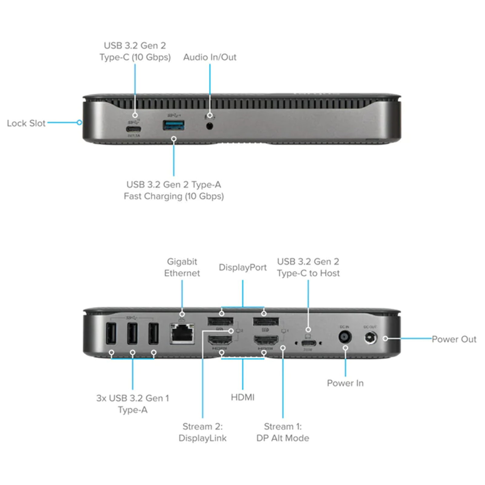 Targus DOCK710 USB-C Quad 4K DisplayLink/Alt Mode Hybrid Docking Station with 100w Power Delivery 2x DP1.2 - 2x HDMI2.0 - 2x USB-C - 4x USB3.0 - 1x RJ45 - Supports Android / Google ChromeOS / Apple MacOS / Microsoft Windows - 3Y Warranty
