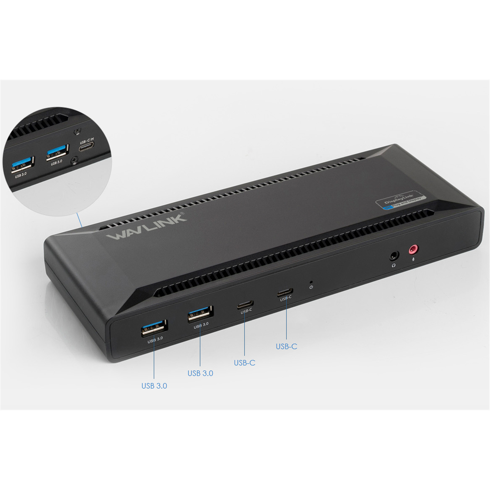 Wavlink WL-UG69PD2-PRO USB-C Dual 4K DisplayLink Docking Station with 100W Power Delivery 2x DP1.2 - 2x HDMI2.0 - 3x USB-C - 4x USB3.0 - RJ45 - 3.5mm Audio in/out