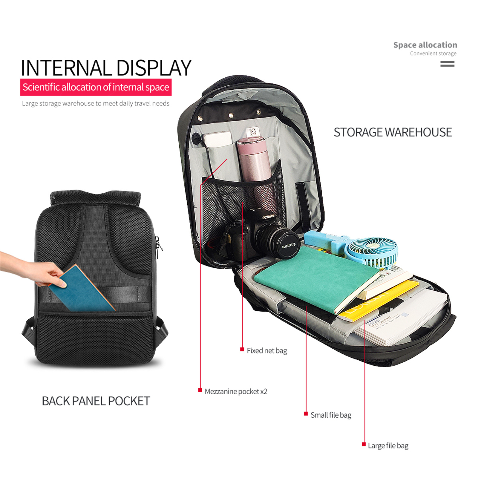 The back panel and shoulder straps are designed with an ergonomic structure, which greatly improves the comfort and stability of the backpack.