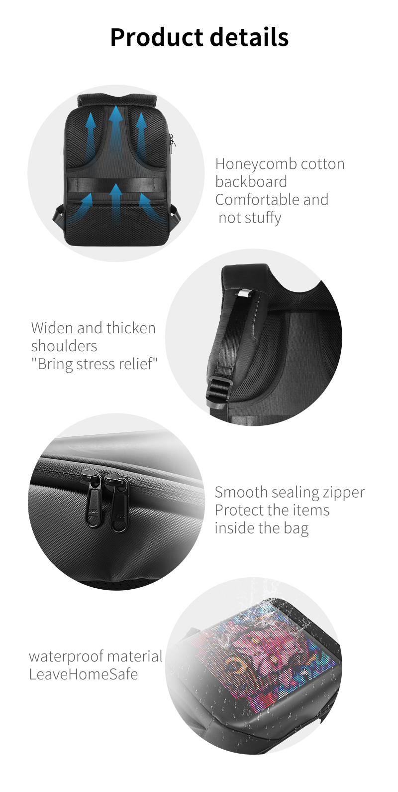 When the display function is turned on, the built-in hidden screen of the backpack will light up.