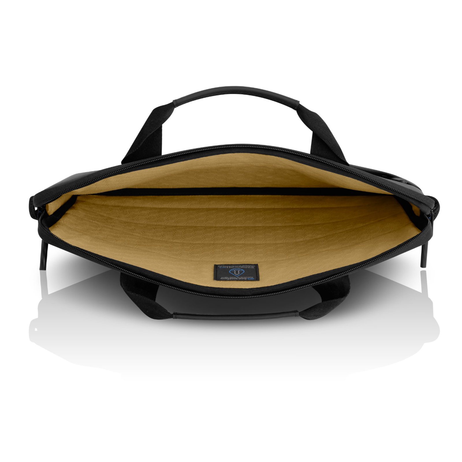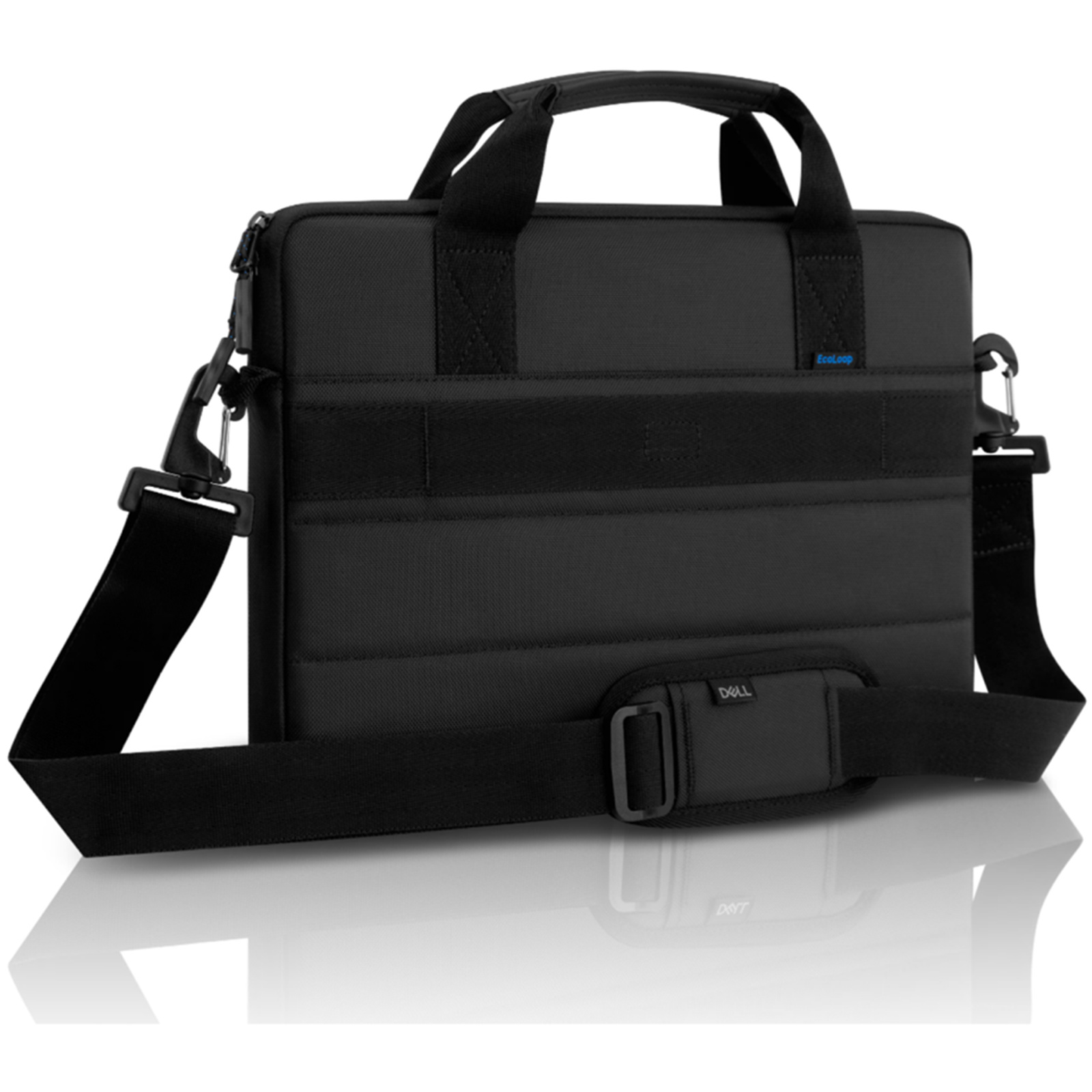 The Dell EcoLoop™ label identifies products which are manufactured with select materials and/or processes that help reduce the environmental impact compared to traditional industry methods. The Dell EcoLoop Pro Sleeve 15-16 features the following items: