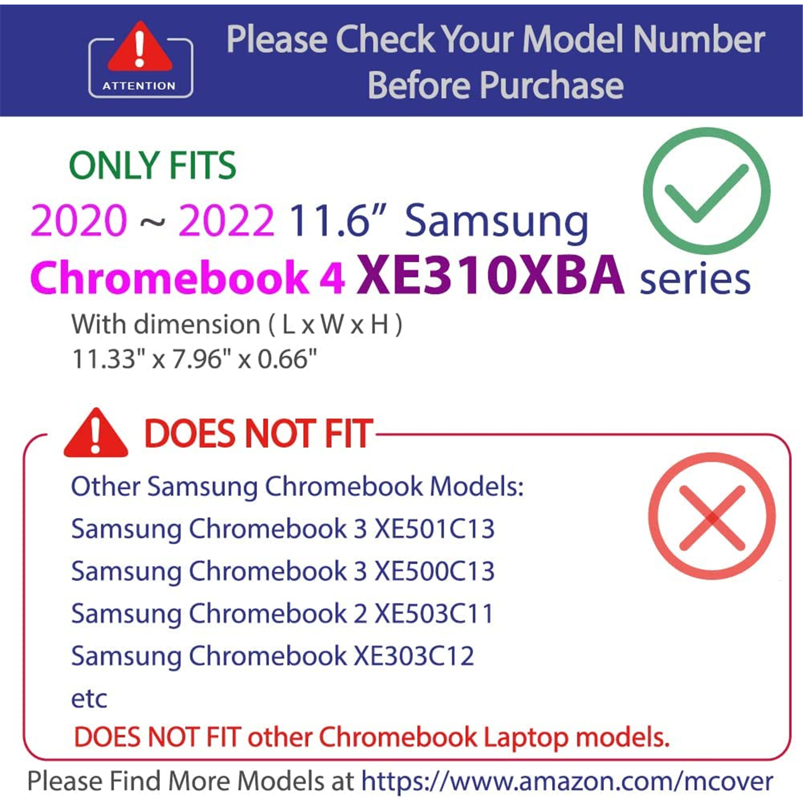 This mCover case is ONLY compatible with the 2020 ~ 2022 11.6'' Samsung ChromeBook 4 XE310XBA Series Laptop: