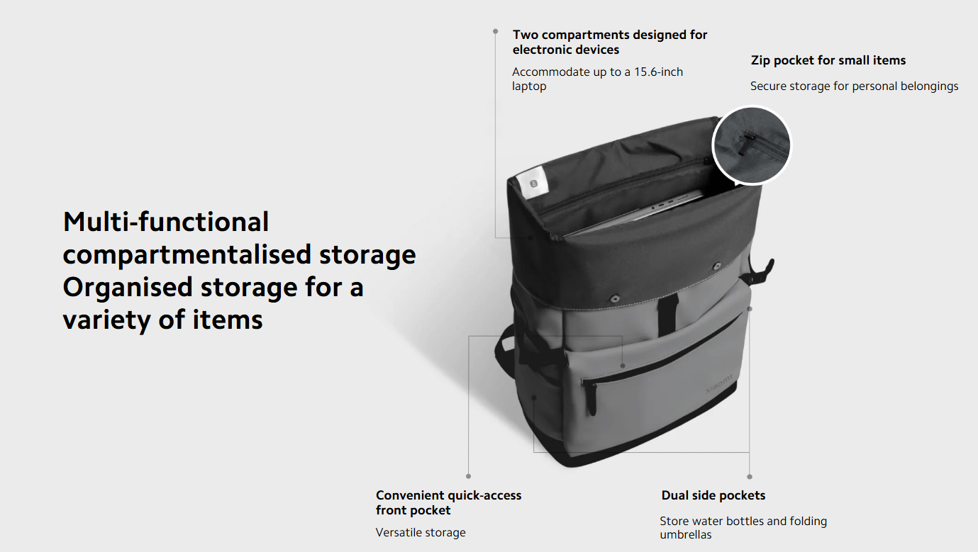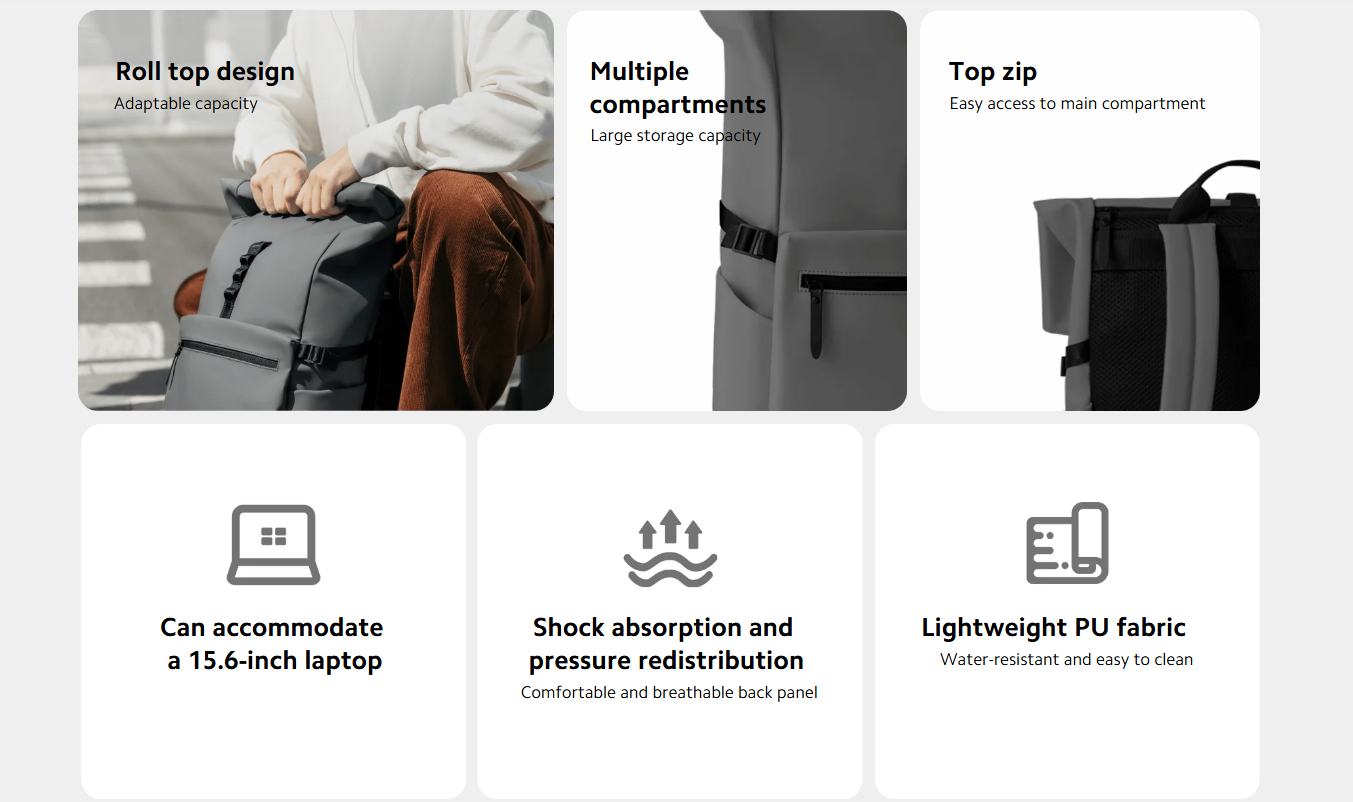 Product URL: https://www.pbtech.co.nz/product/NBGMIX58457/Xiaomi-23L-Roll-Top-Casual-Backpack-for-156-Laptop