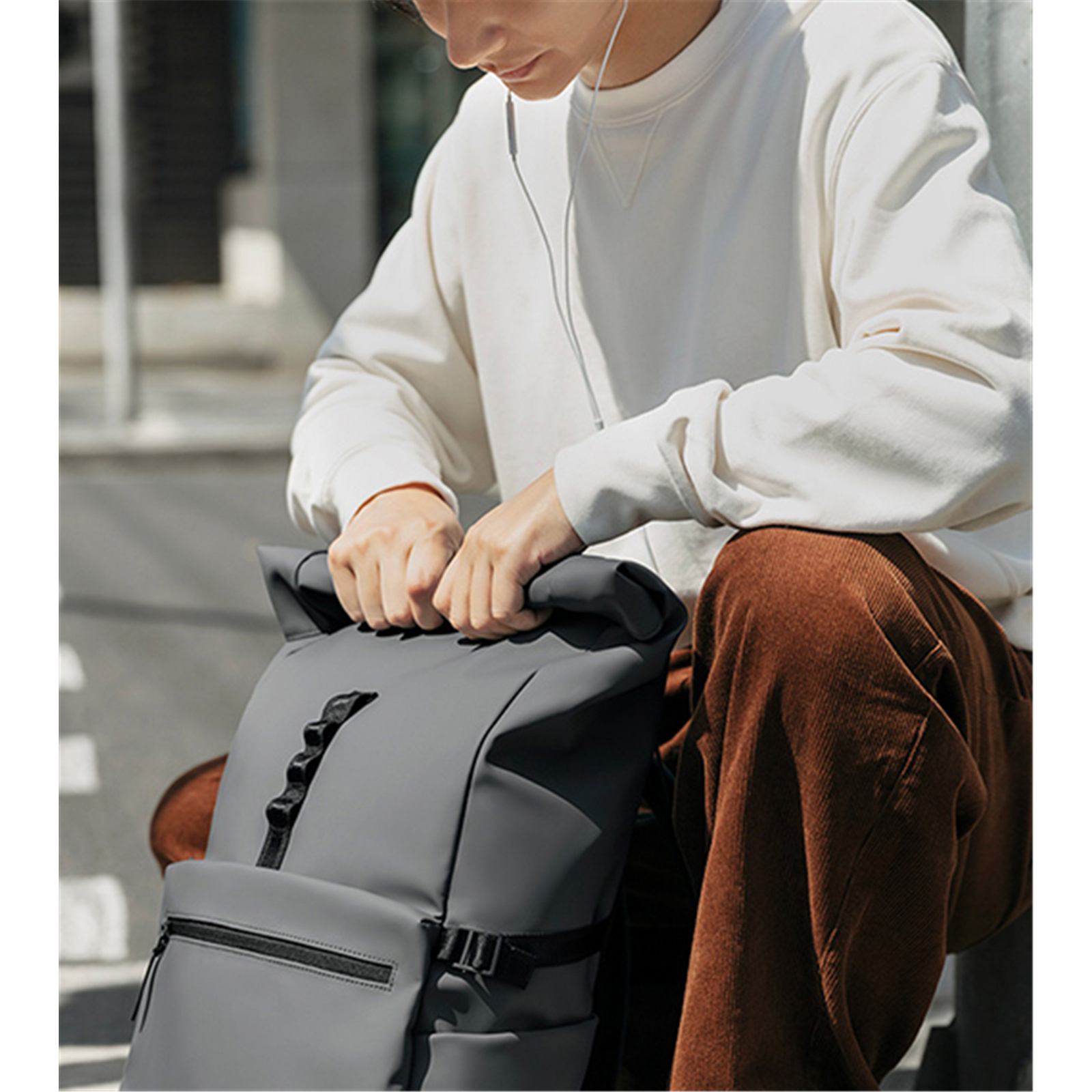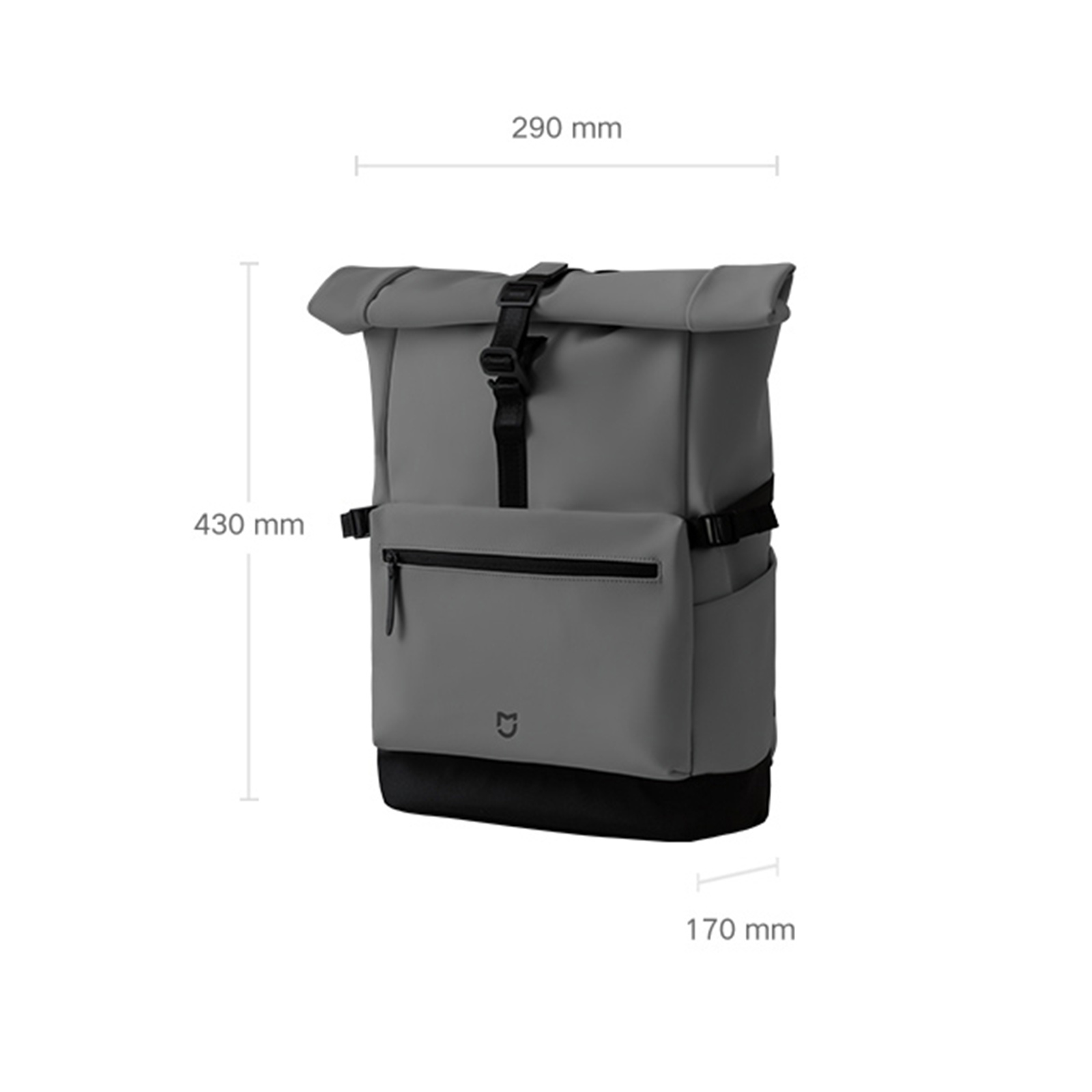 Xiaomi 23L Roll Top Casual Backpack for 15.6" Laptops - Grey / Black - Lightweight PU Fabric Water Resistant