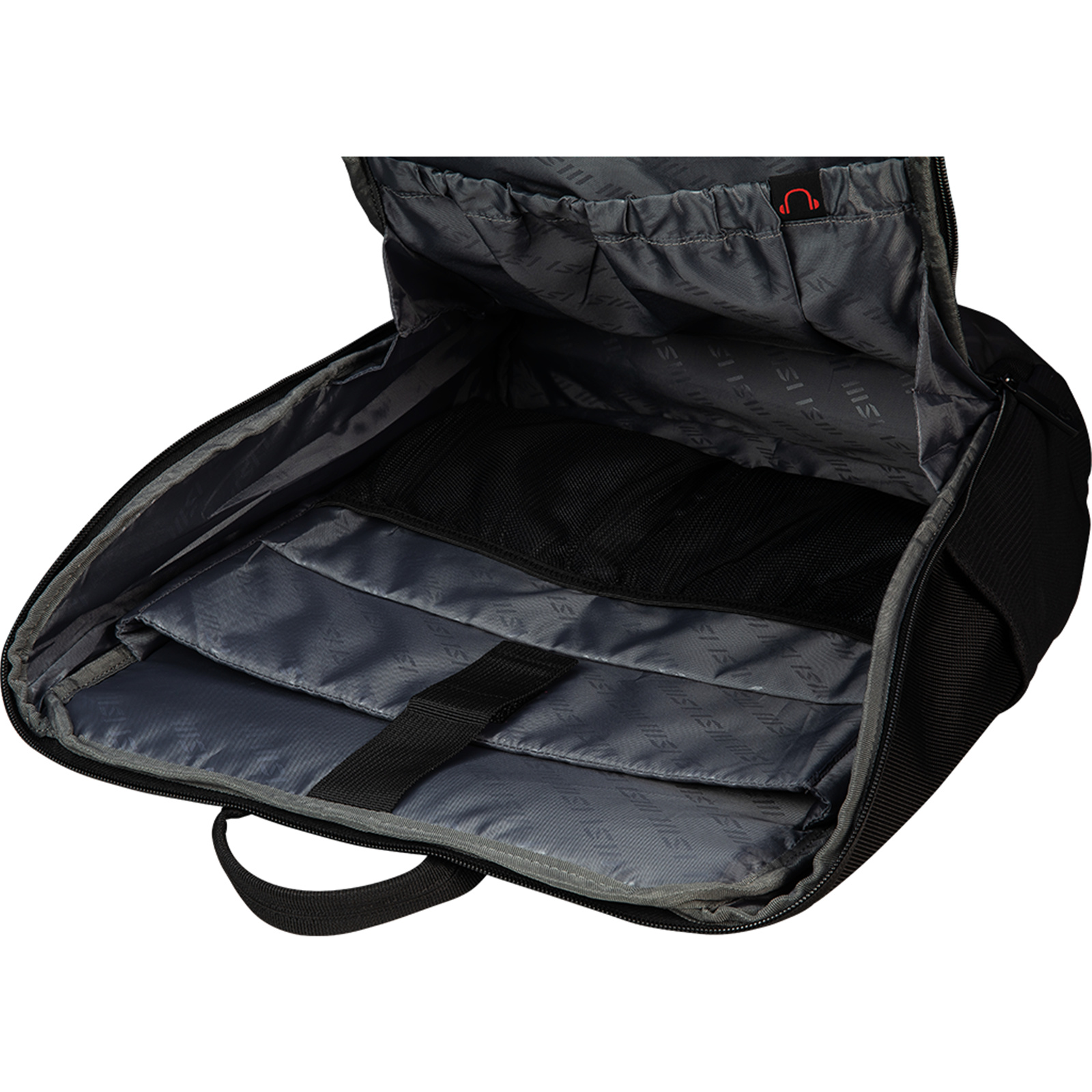 - Padded mesh back panel of enhanced comfort and breathability