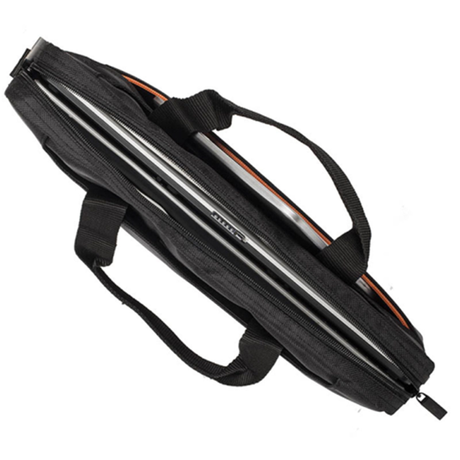 - Handles can be folded into special outer compartments from both sides to make the bag more compact