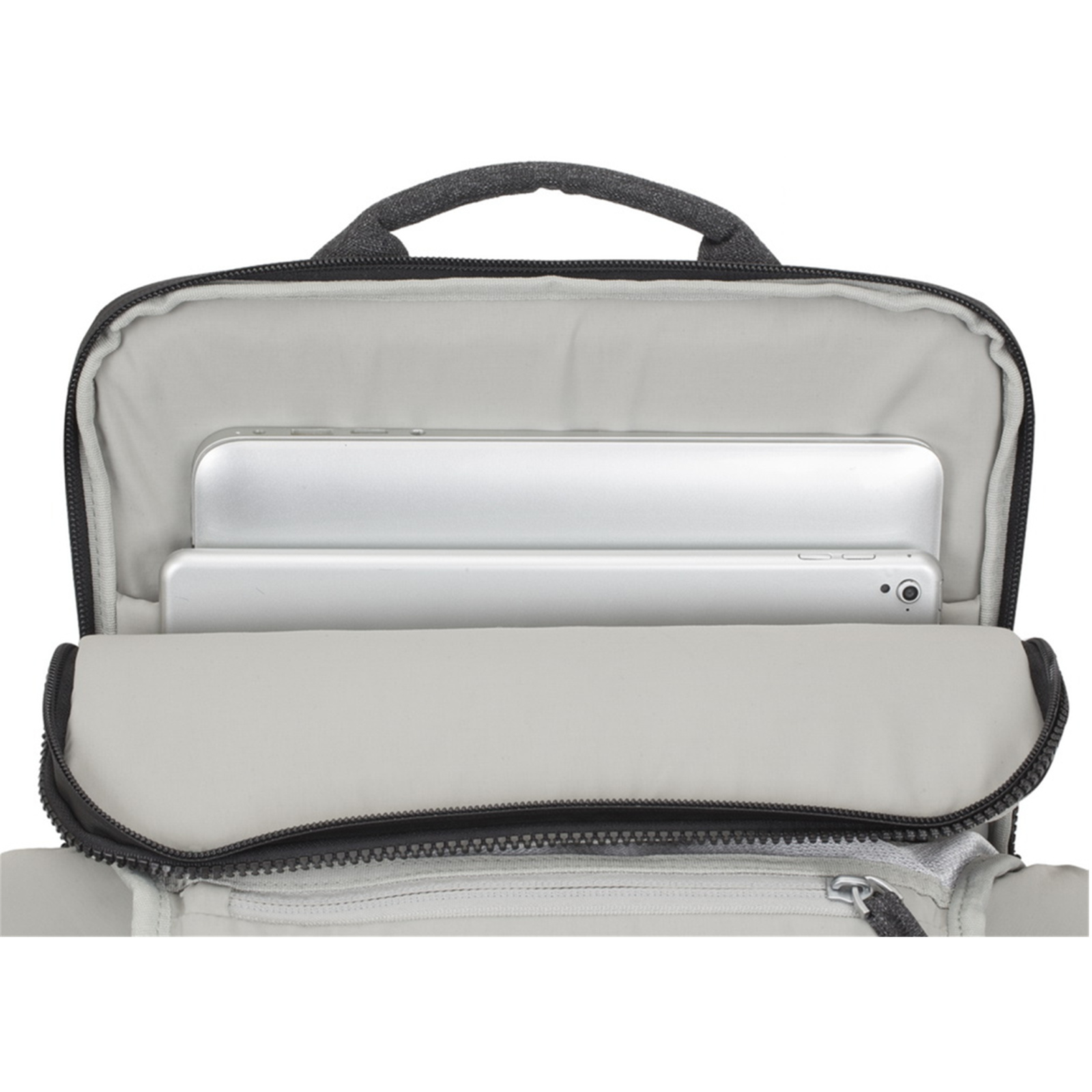 Capacious and protective, the backpack has a variety of compartments which safeguard your possessions. A Laptop section has a waterproof zipper and padded sides, and a pocket for a Tablet up to 10 inches has a padded bottom.