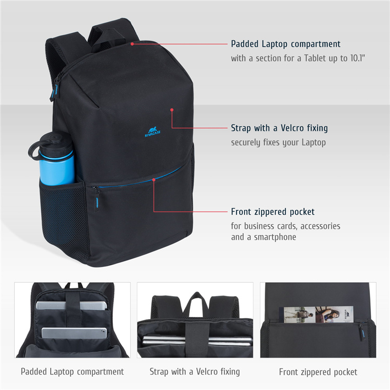 Rivacase Regent Laptop Backpack for 15.6" Notebook - Black