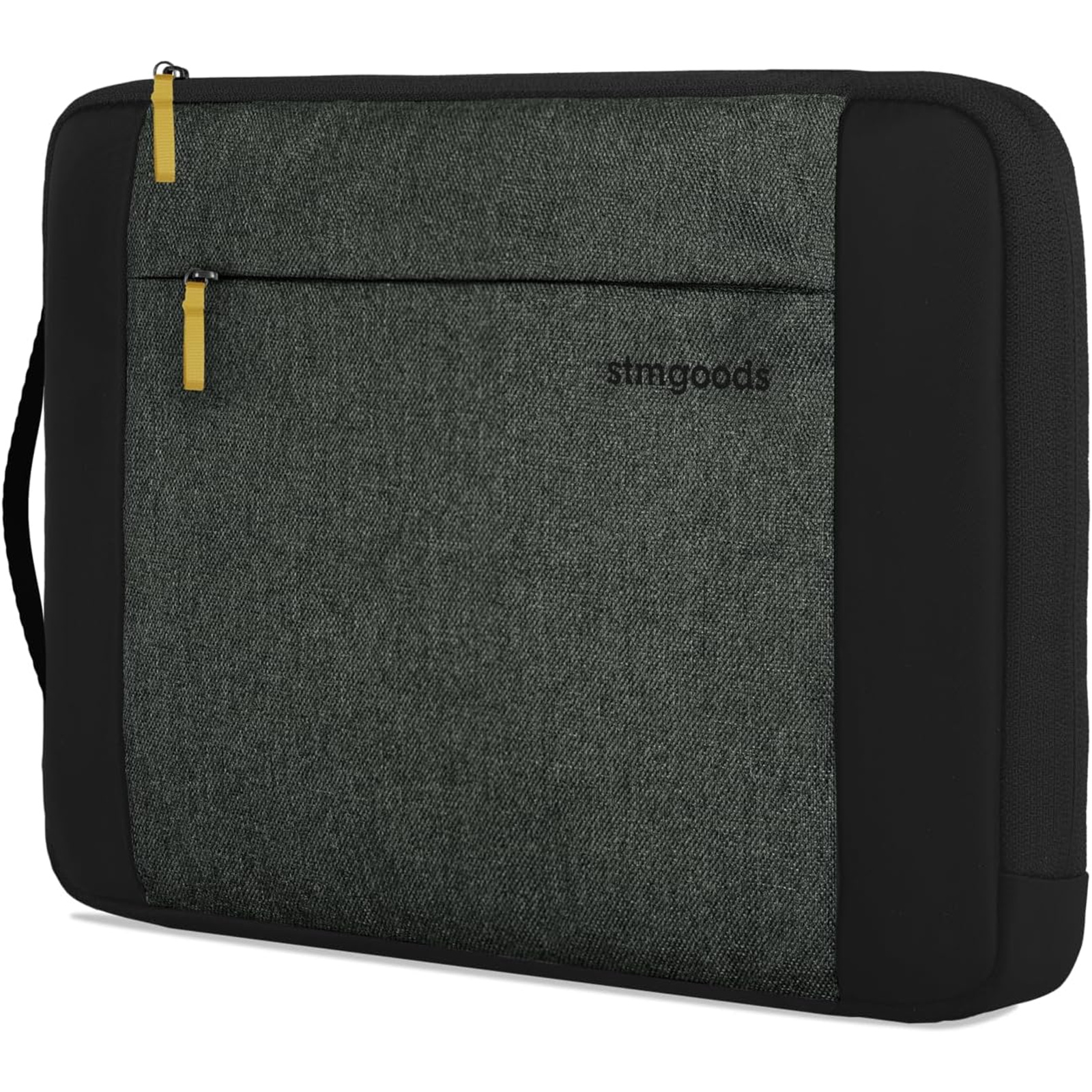 STM Kin Laptop Sleeve for 14" MacBook Air & Pro - Black Slate - Slim & Lightweight, Fleece-Lined Interior, 4mm EVA Shock Absorption, Zippered Storage Pocket, Retractable Handle, Stylish & Protective