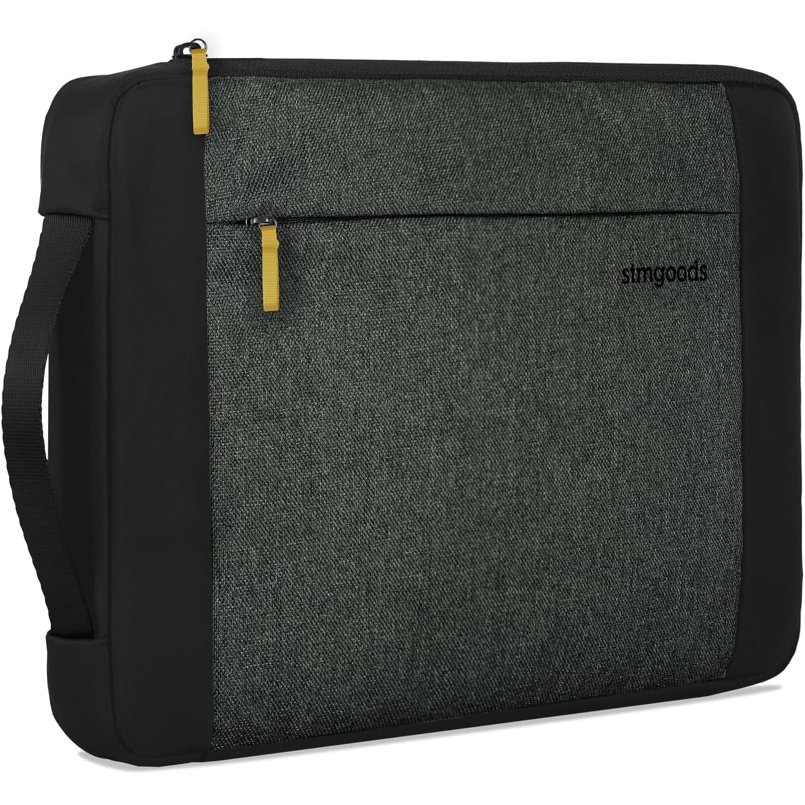 STM Kin Laptop Sleeve for 15"-16" MacBook Air & Pro - Black Slate - Fleece-Lined Interior, 4mm EVA Shock Absorption, Zippered Storage Pocket, Retractable Handle