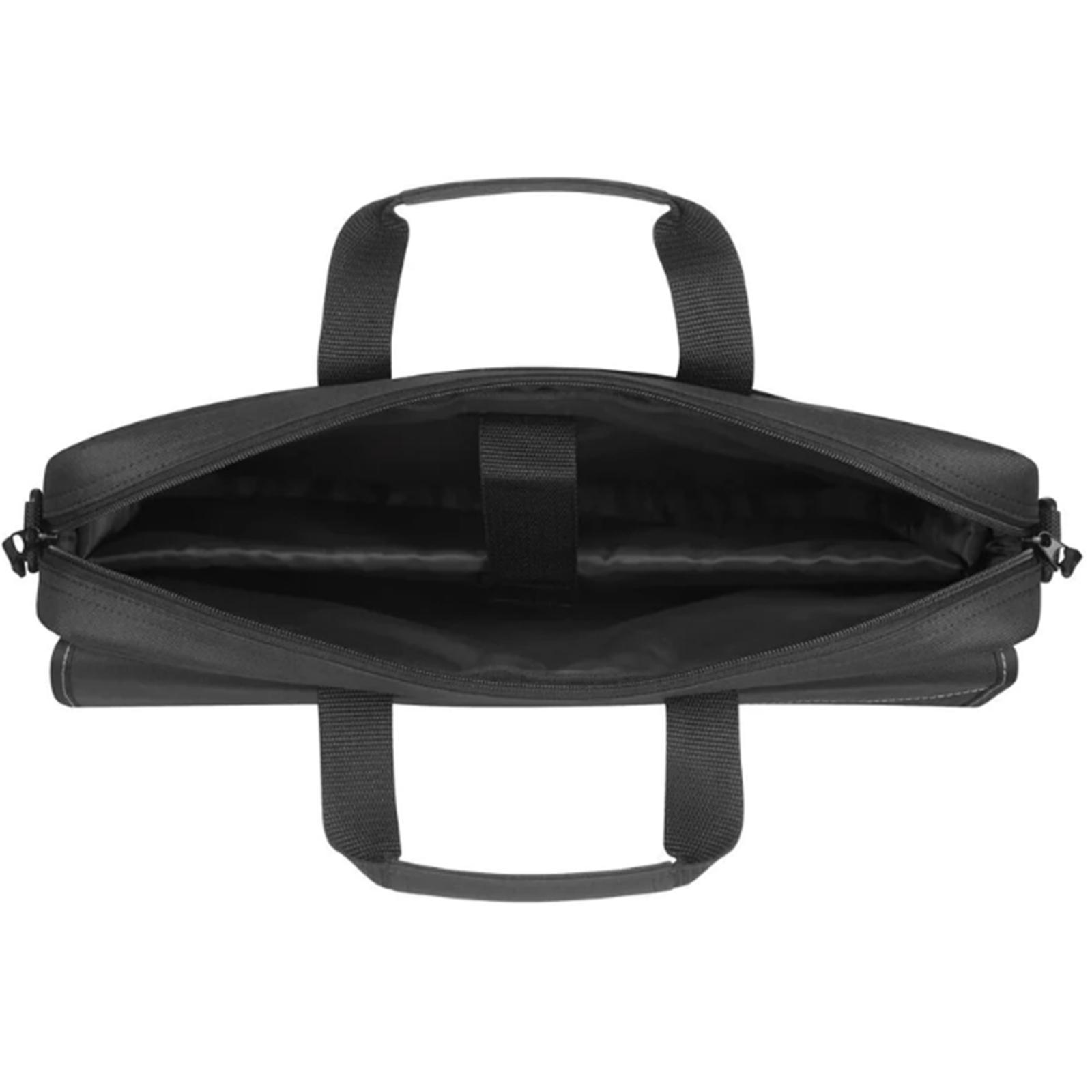 Toploading design with padded laptop compartment; front accessory pocket with zip; essential carry handle and shoulder strap.