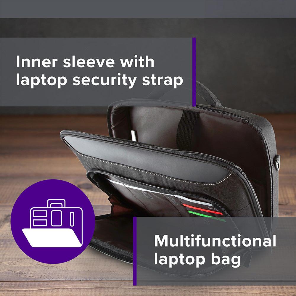 The new Classic+ laptop case is designed protect 18" widescreen laptops. The new inner sleeve with security strap safeguards the surface and gives additional overall protection to your laptop. The re-enforced handle is wrapped in a soft neoprene to provide comfort and strength.