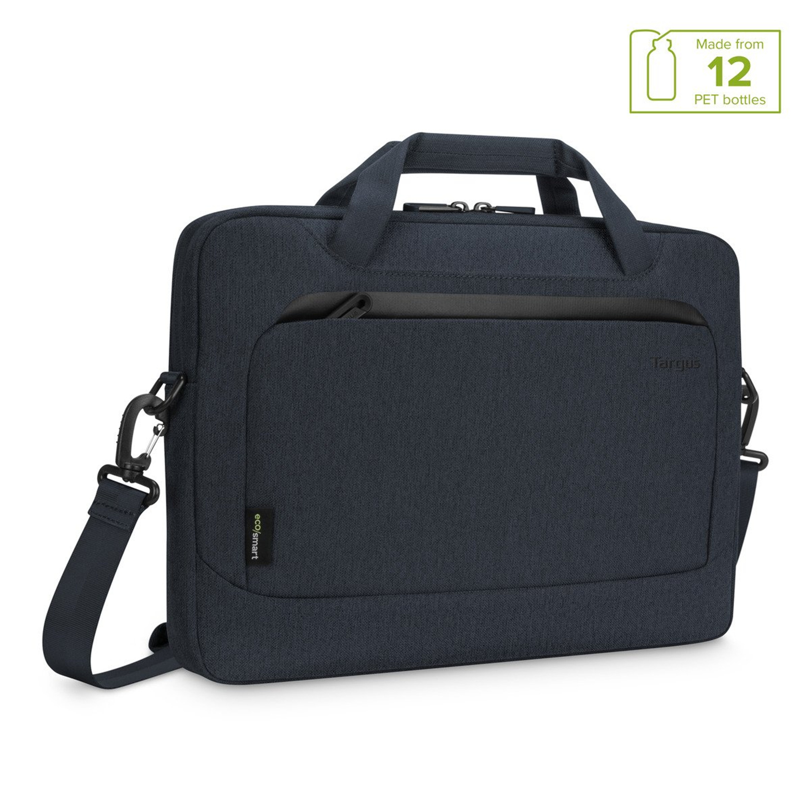 Made from recyclable materials on the inside and out. Using fabric woven from 12 recycled plastic water bottles, the 14" Cypress Slimcase with EcoSmart® is thoughtfully designed to protect your work essentials while also protecting the environment.