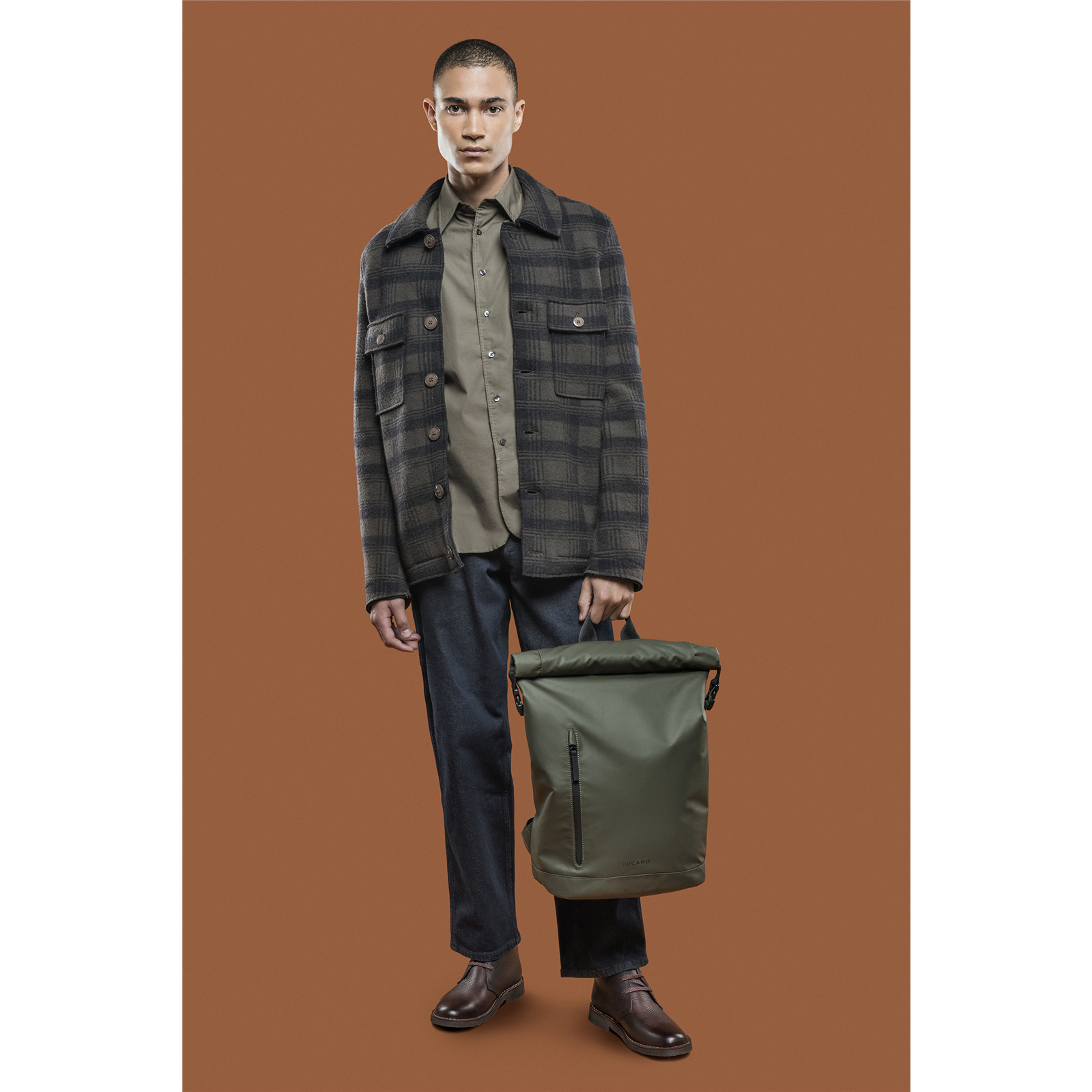 Tucano ROLLO Backpack for Laptop 15.6" Macbook Pro 16" - Military Green Roll Top Closure - Water-Resistant Coated Fabric
