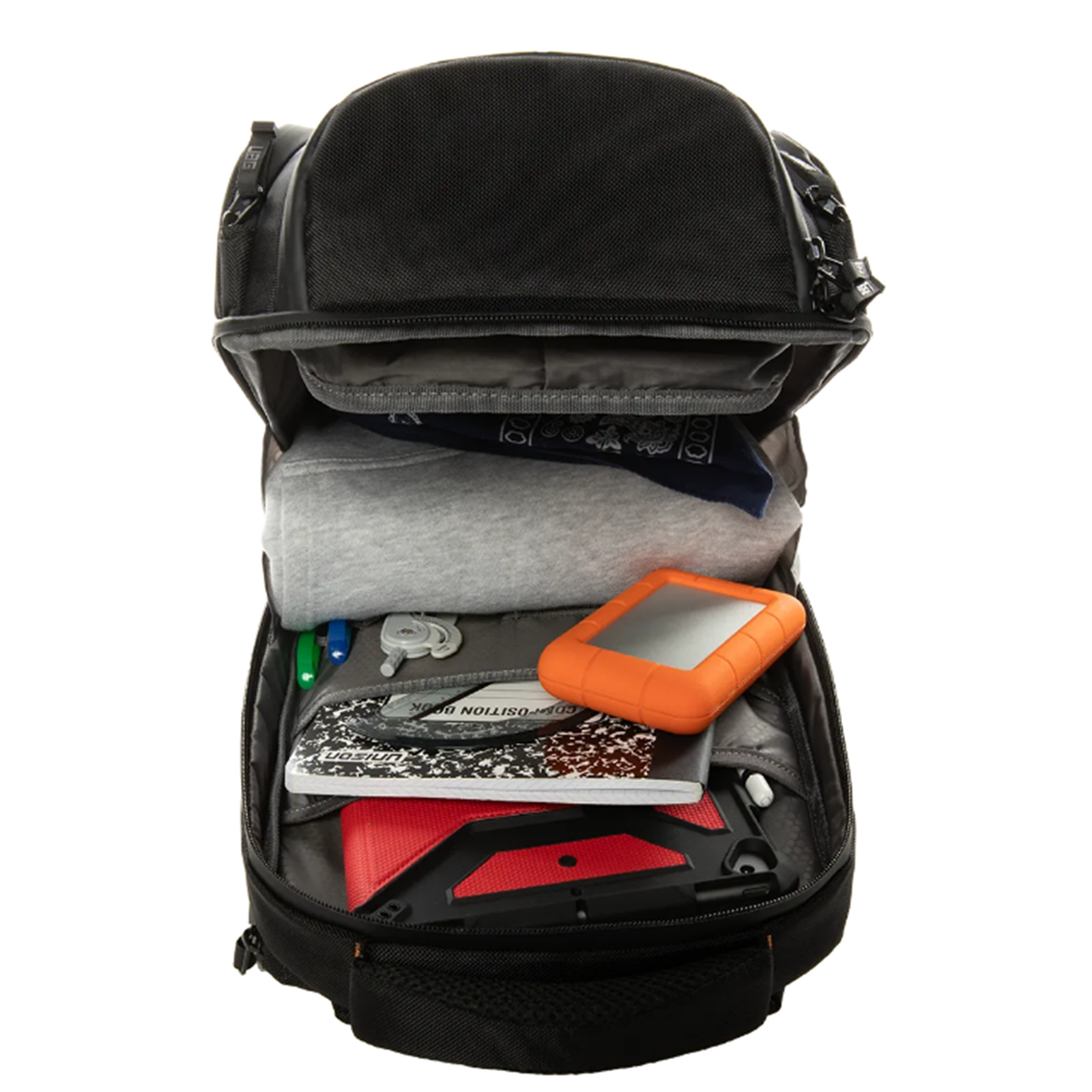 - Roomy interior with multi-organization dividers, multiple compartments and pockets, & fleece-lined top-loading tech locker.