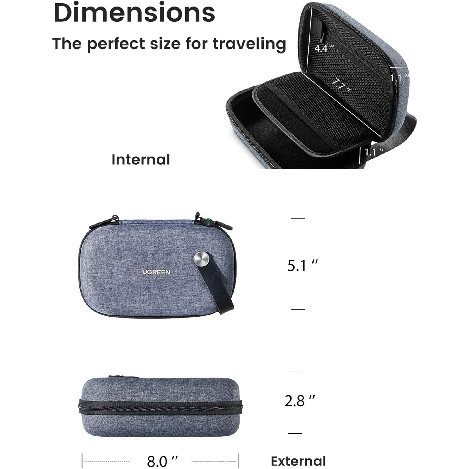 The dimension of this small travel carrying case is 8" x 5.08" x 2.83". It is of reasonable design and perfect for travelling by keeping all cables, electronic gadgets and cosmetics in the same place making them easier to find. A great way to end up the mess in your travel bag and keep all the little gadgets well organised.
