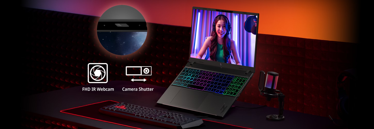 The FHD IR camera keeps you clear and defined in every stream or team chat, while the camera shutter adds instant privacy when the match is over. Stay connected when it counts, unseen when it doesn't.