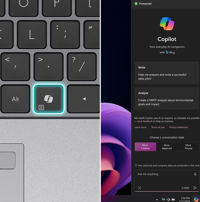 Microsoft Copilot in Windows5 with commercial data protection is your AI assistant at work. Supercharge your productivity and achieve more with less time and effort using Copilot. Experience your everyday AI companion now with the dedicated Copilot key. Just one click for endless exploration.